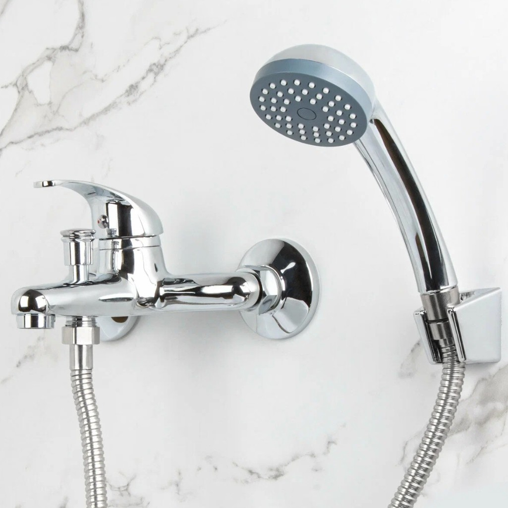Смеситель для ванны Econoce EC0261 картридж D35-A, с душевым гарнитуром, однорычажный, цинк, цвет хром