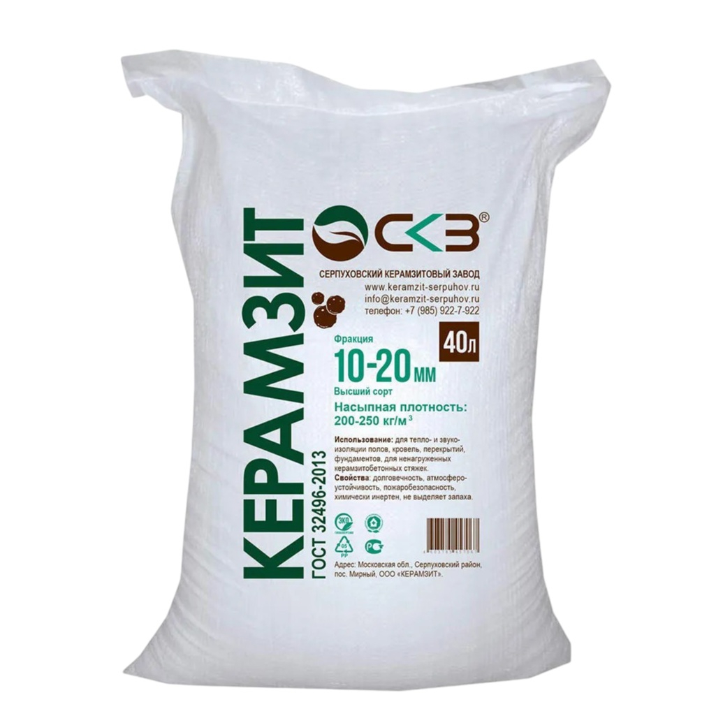 Керамзит, фракция 10-20 мм СКЗ, для строительства, мешок 40 литров