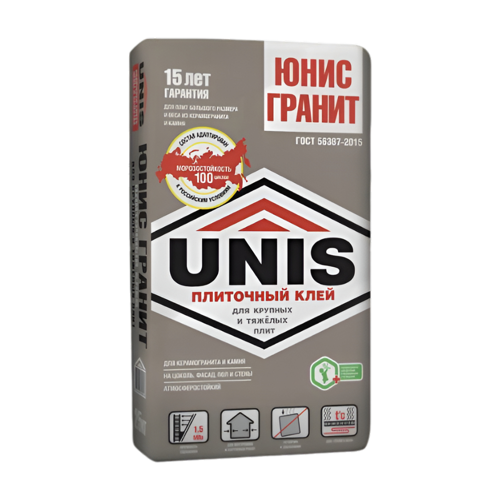 - Клей UNIS Гранит для крупных и тяжёлых плит 25кг