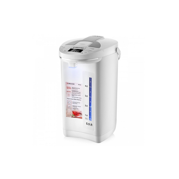 Термопот Brayer BR1091 — это универсальный прибор, который совмещает функцию чайника и термоса. Объем термопота составляет 5,5 л. Корпус выполнен из нержавеющей стали. Прибор оснащен автоотключением при отсутствии воды. В этом устройстве можно не только вскипятить воду, но и длительное время поддерживать температуру.