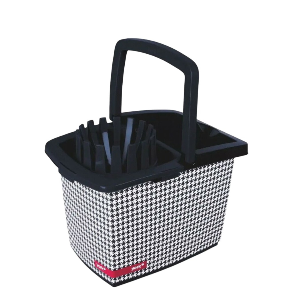 Описание ведра York Пепита 071210, объем 10 литров, пластик, вставка отжим МОП, цвет Черно-белый
