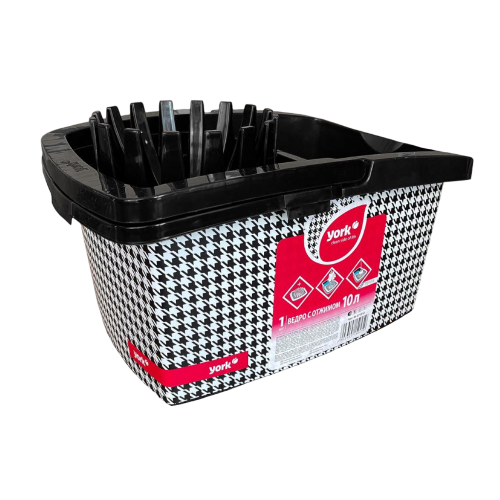 Ведро хозяйственное York Пепита 071210, объем 10 литров, пластик, вставка отжим МОП, цвет Черно-белый