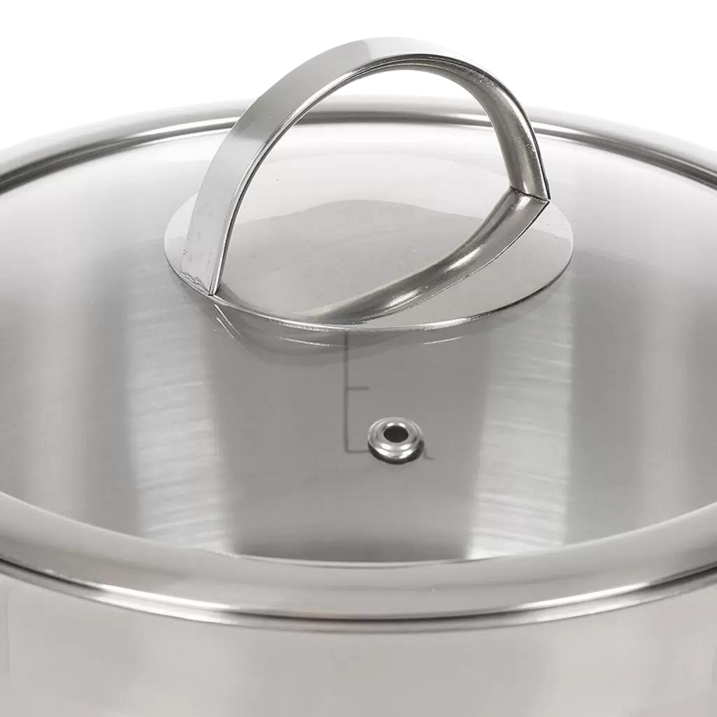 Кастрюля нержавеющая сталь Daniks Бонн GS-01319-18CA, 2.5 л, стеклянная крышка, индукция - это современное решение для выбора посуды для индукционной плиты, а также для приготовления супа и каши. Корпус из нержавеющей стали марки 201 гарантирует долгий срок службы даже при ежедневном использовании, а капсульное дно толщиной 3 мм обеспечивает быстрый и равномерный нагрев, предотвращая пригорание. В отличие от аналогов, эта модель оснащена мерной шкалой, что позволяет точно отмерять объем жидкости при готовке.
