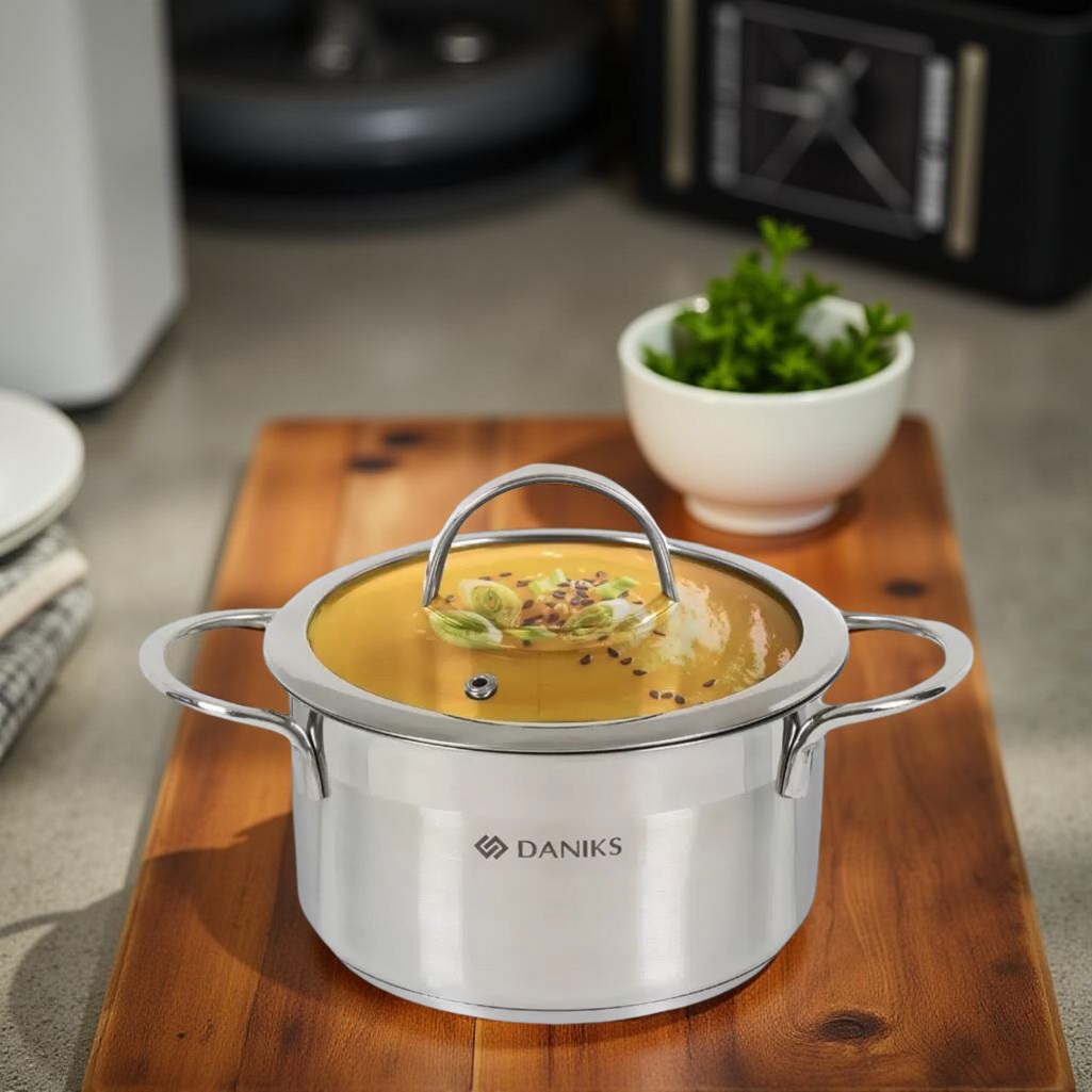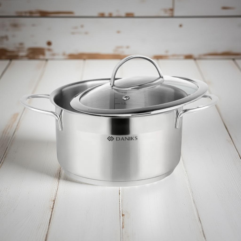 - Кастрюля DANIKS Бонн нержавеющая сталь со стеклянной крышкой индукция 2.5л