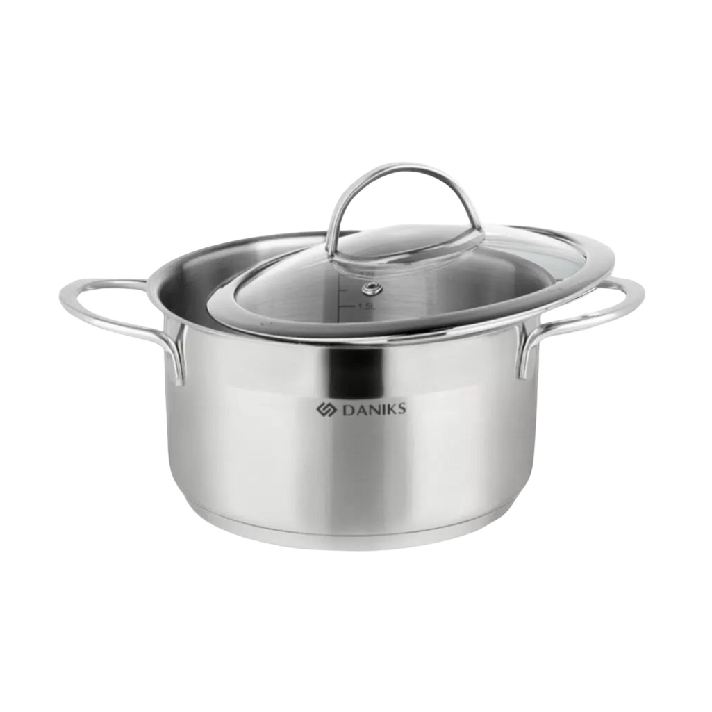 Кастрюля нержавеющая сталь Daniks Бонн GS-01319-18CA, 2.5 л, стеклянная крышка, индукция