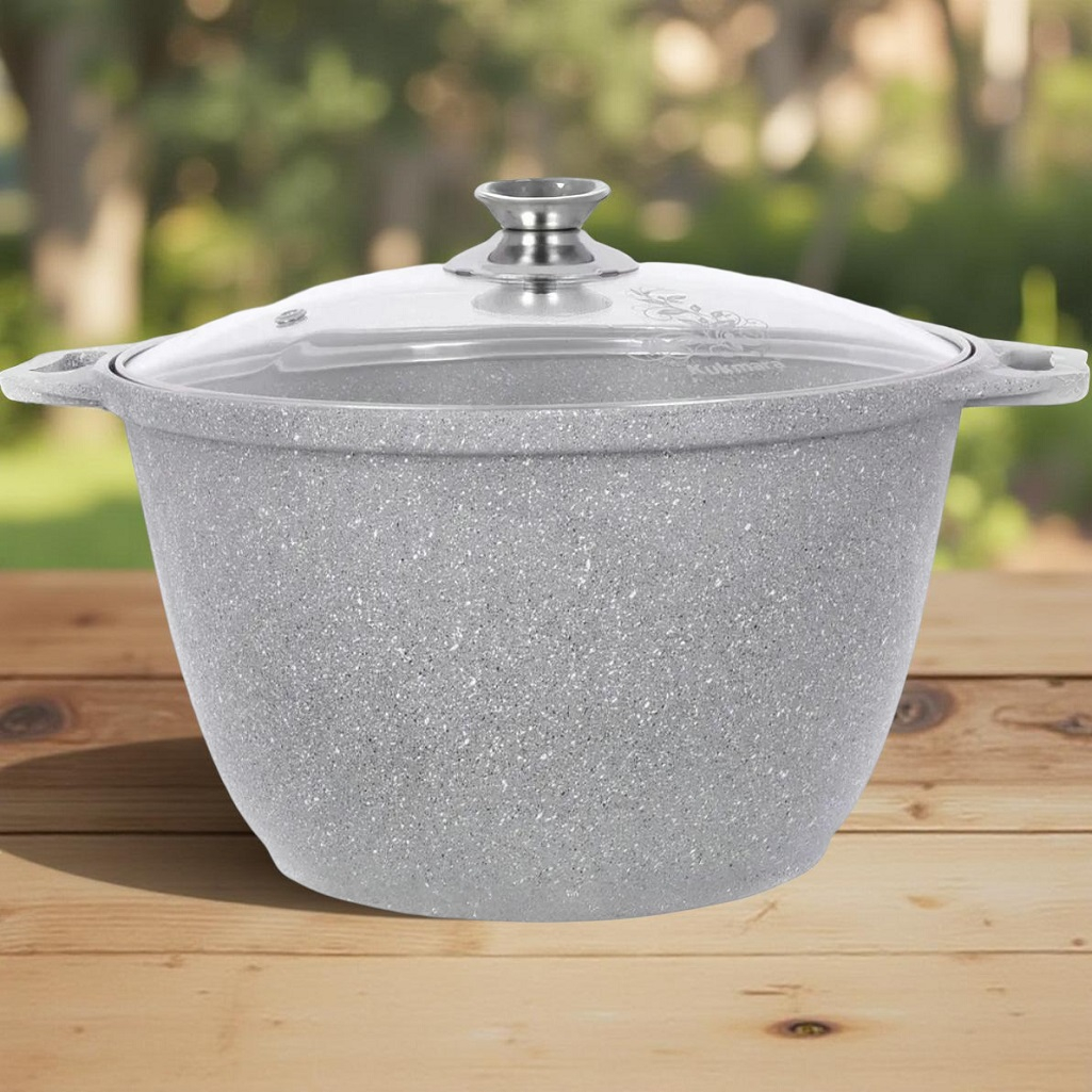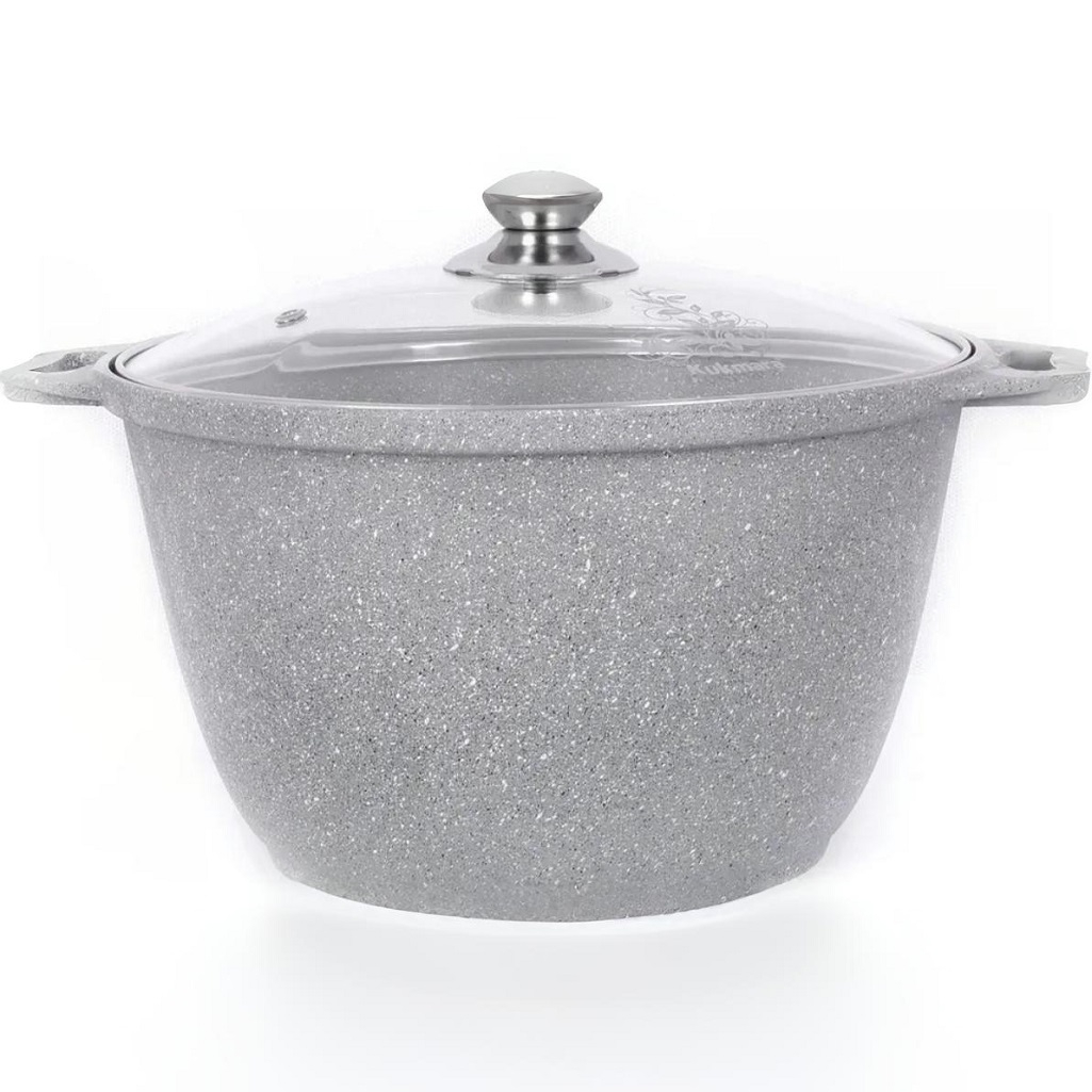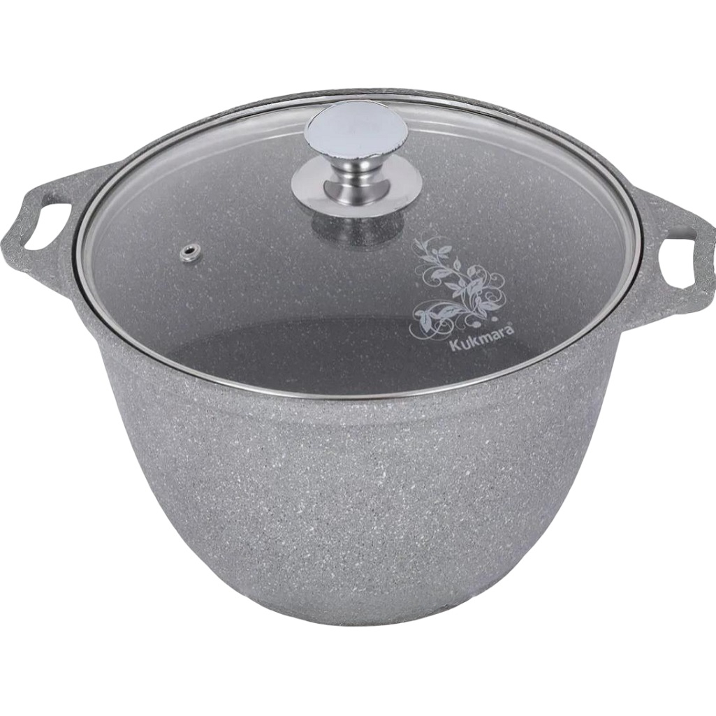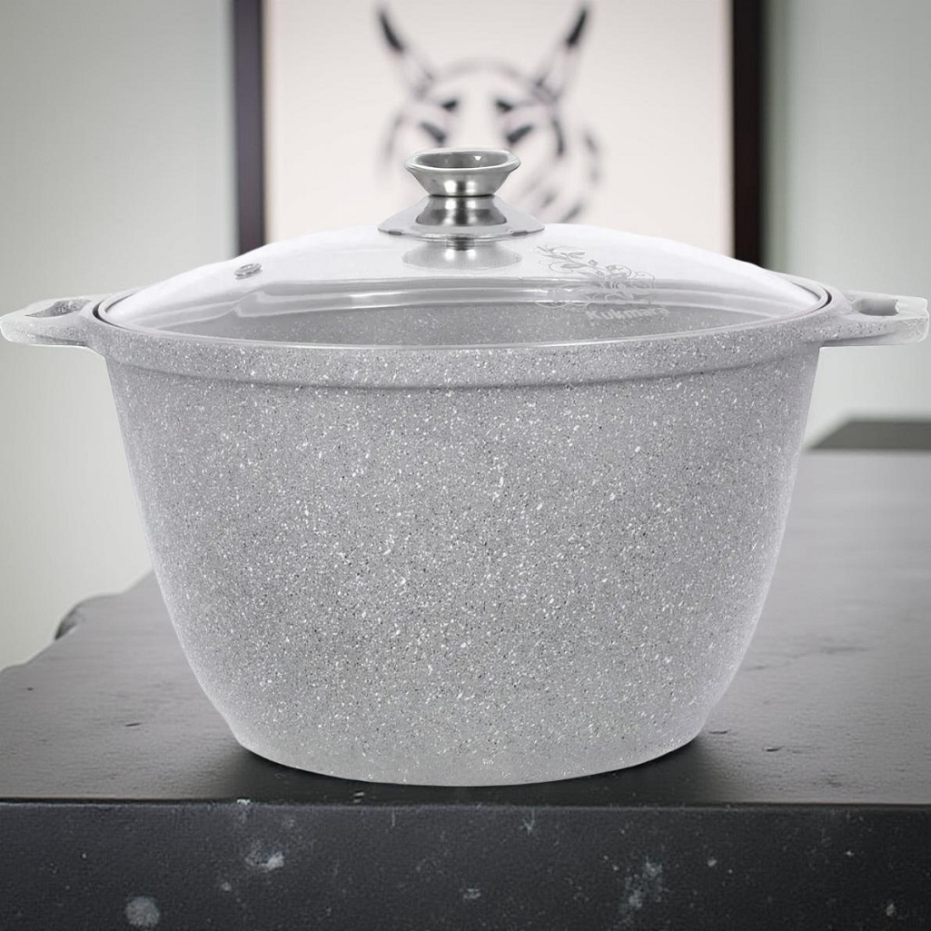 - Кастрюля KUKMARA светлый мрамор со стеклянной крышкой 4л