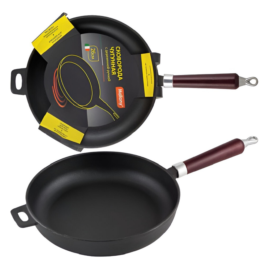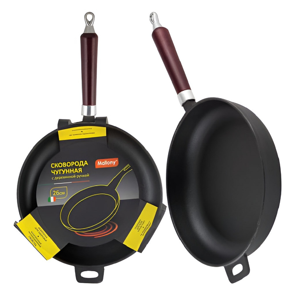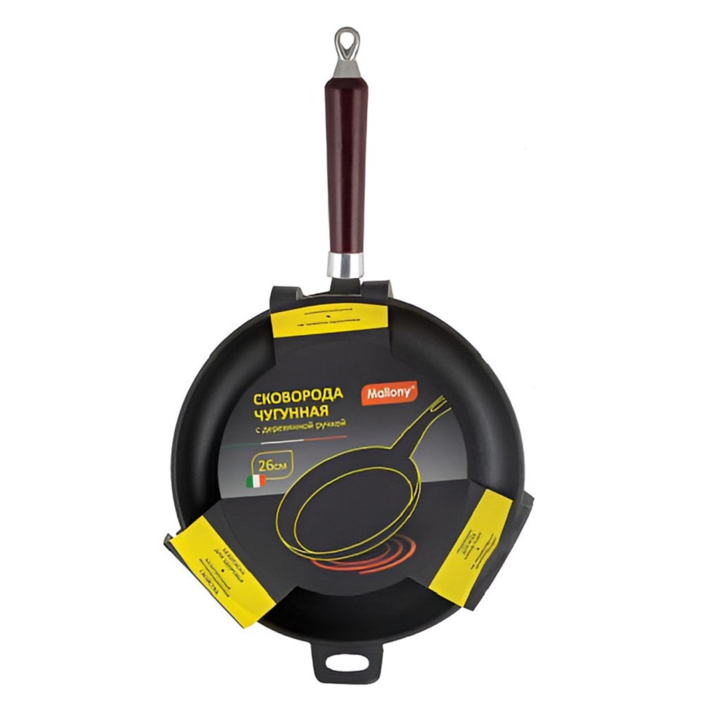 Сковорода чугунная Mallony CIF26-W, 260 мм, с деревянной ручкой
