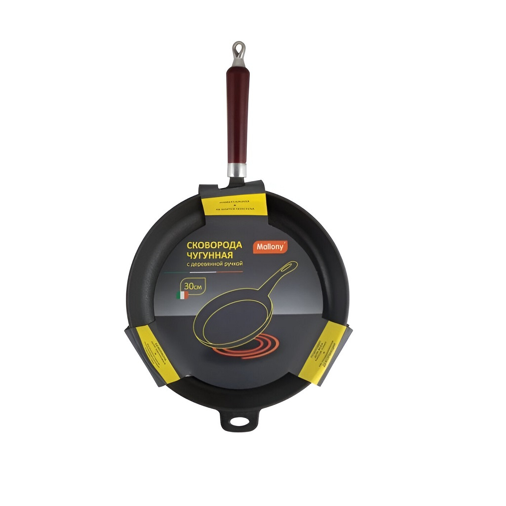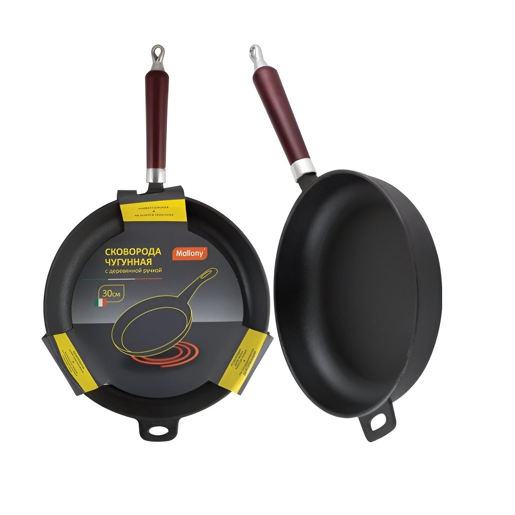 - Сковорода MALLONY чугунная с деревянной ручкой 300мм