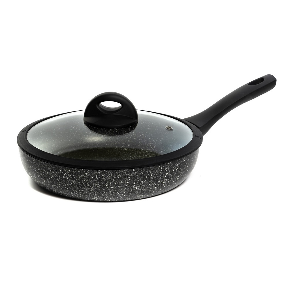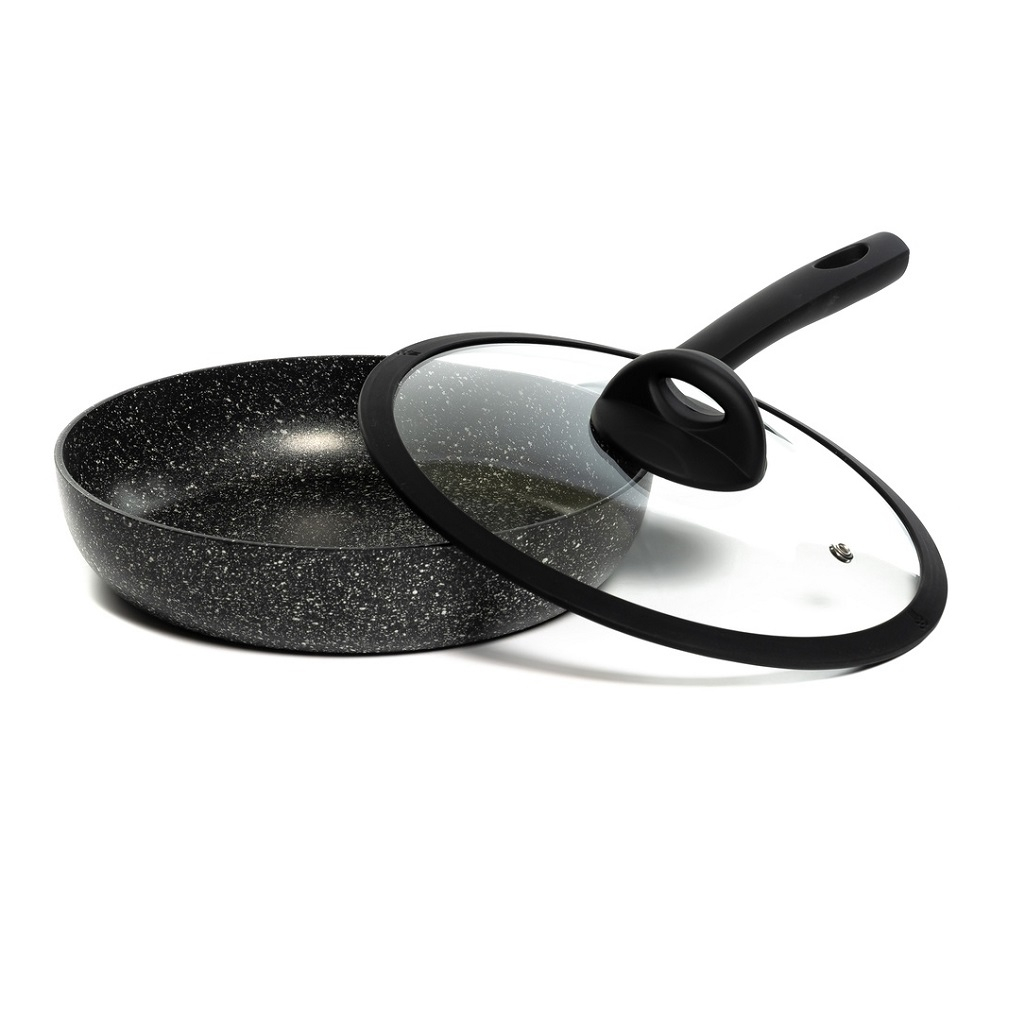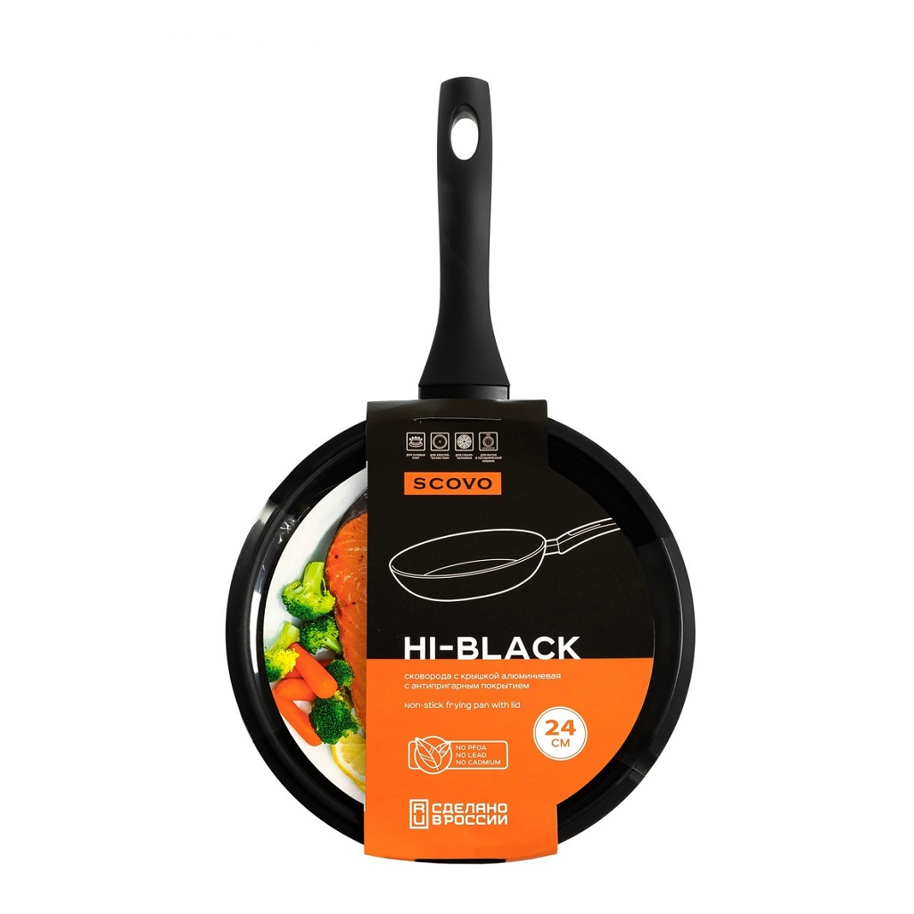 - Сковорода SCOVO Hi-Black антипригарное покрытие с крышкой 24см