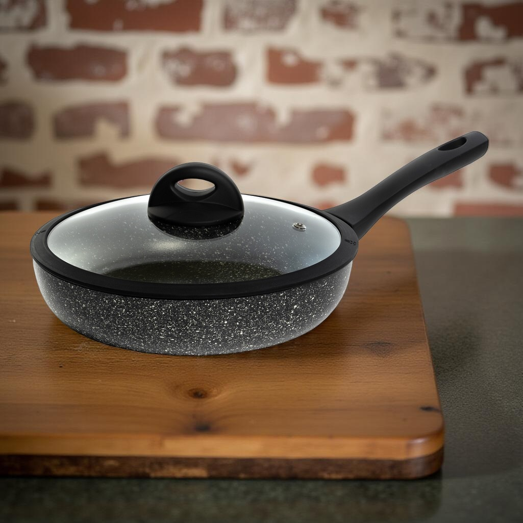 Сковорода алюминиевая Scovo Hi-Black HB-009, с крышкой, диаметр 240 мм, антипригарное покрытие