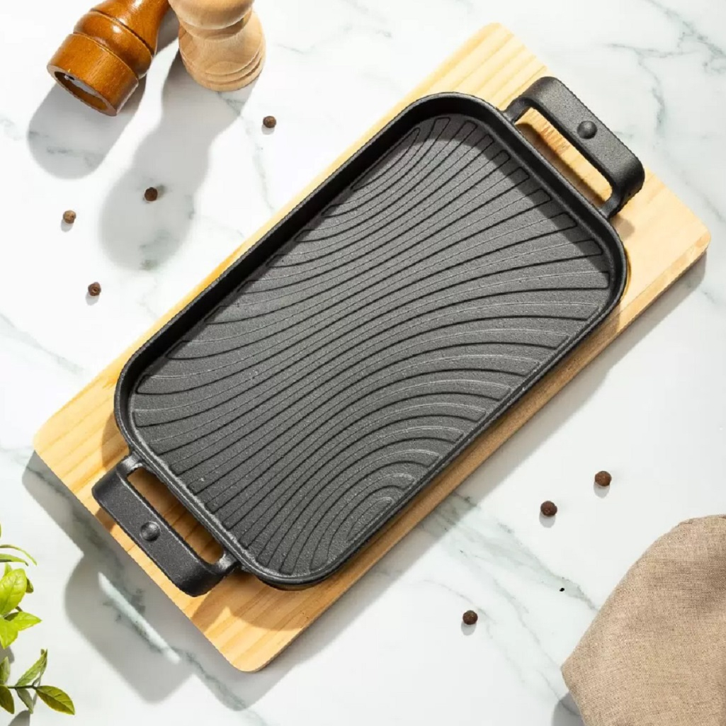 - Сковорода Y4-8881 чугунная с подставкой 29*17*2,5см