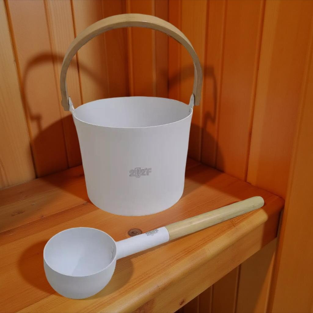 - Набор 212F "SIMPLE WHITE" шайка 5л и черпак 0,2л (алюминий, ручки бамбук)