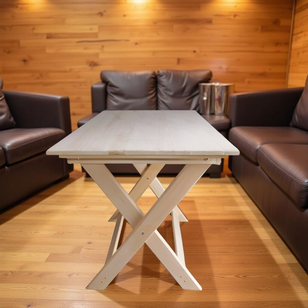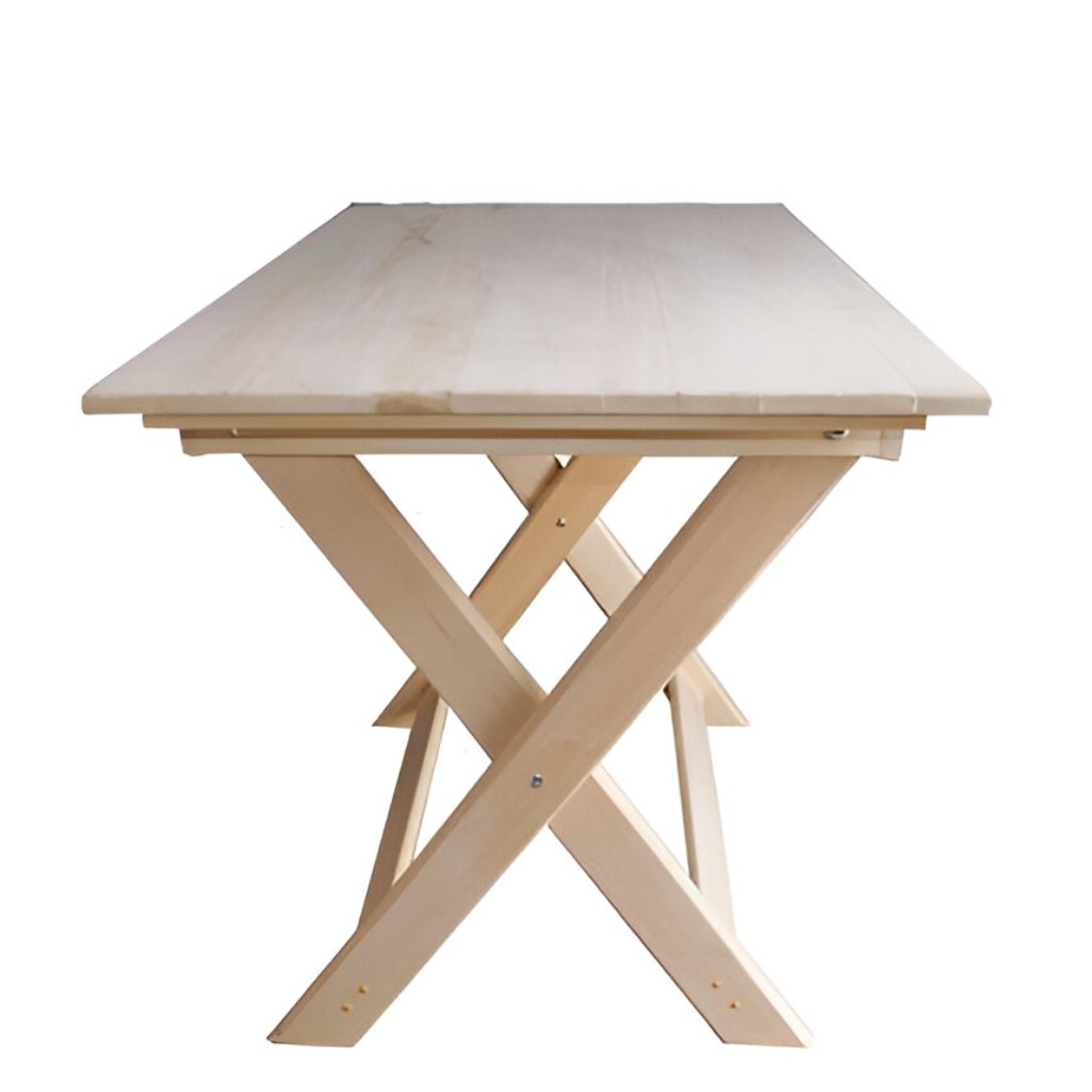Стол прямоугольный, Липа, для бани и сауны, раскладывается, 600х755х1200 мм, дерево выполнен из массива дерева. Стол складывается в одно движение. Липа обладает антибактериальными свойствами, что делает её идеальным материалом для использования в банях, где важна высокая степень гигиены. Гипоаллергенность липы исключает риск аллергических реакций и выделения вредных веществ. Низкая теплопроводность материала предотвращает ожоги, так как липа не нагревается сильно даже при высоких температурах. Древесина липы отличается красивой текстурой и светлым оттенком, который придаёт столу эстетическую привлекательность. Экологичность липы делает её безопасным для окружающей среды материалом. Мягкий и успокаивающий аромат липы создаёт приятную атмосферу в бане или сауне.