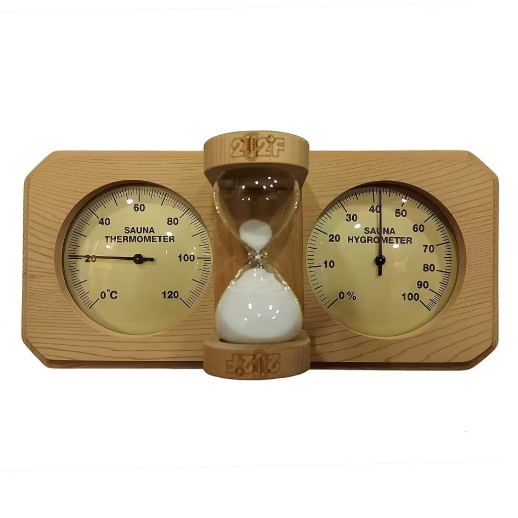 Станция банная 212F ТН-25R GOLD термогигрометр с песочными часами, канадский кедр, светло-коричневый - это стильный термогигрометр и песочные часы, созданные для вашего уюта и комфортного времяпрепровождения в бане или сауне. Изготовленный из канадского кедра, этот аксессуар не только украшает любое помещение, но и выполняет важные функции, позволяя контролировать уровень влажности и температуры. Серебряный циферблат придаёт изделию современный и стильный вид, а естественное дерево добавляет тепла и уюта, создавая гармонию в интерьере. Кроме того, сочетание качественных материалов гарантирует долговечность и надёжность в использовании. Термогигрометр с точной шкалой легко читается, что позволяет вам быстро получать необходимые данные для поддержания комфортного микроклимата в парной. Песочные часы, вмонтированные в конструкцию, становятся не только практичным элементом, но и стильным аксессуаром, который подчеркнёт ваш вкус. Они помогут не только отслеживать время, но и добавят неповторимый шарм в атмосферу вашего отдыха. Этот продукт станет отличным решением для тех, кто ценит высокое качество и функциональность в мелочах.