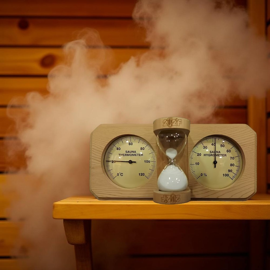Станция банная 212F ТН-25R GOLD термогигрометр с песочными часами, канадский кедр, светло-коричневый