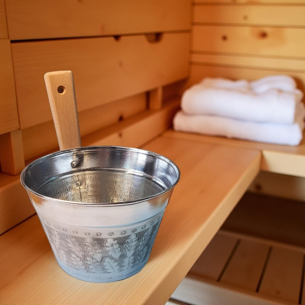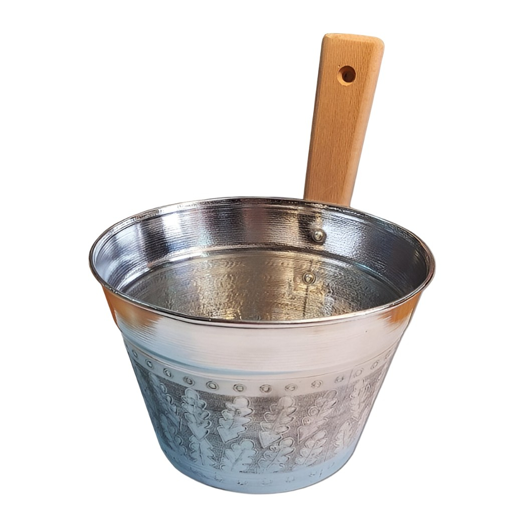 Ушат для бани и сауны, объем 4 л, алюминий, бук, деревянная рукоятка