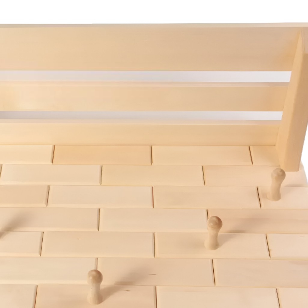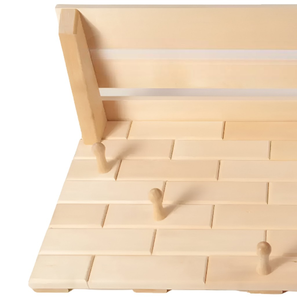 Описание вешалки с полкой Кирпичики 5 деревянных крючков для вещей, липа