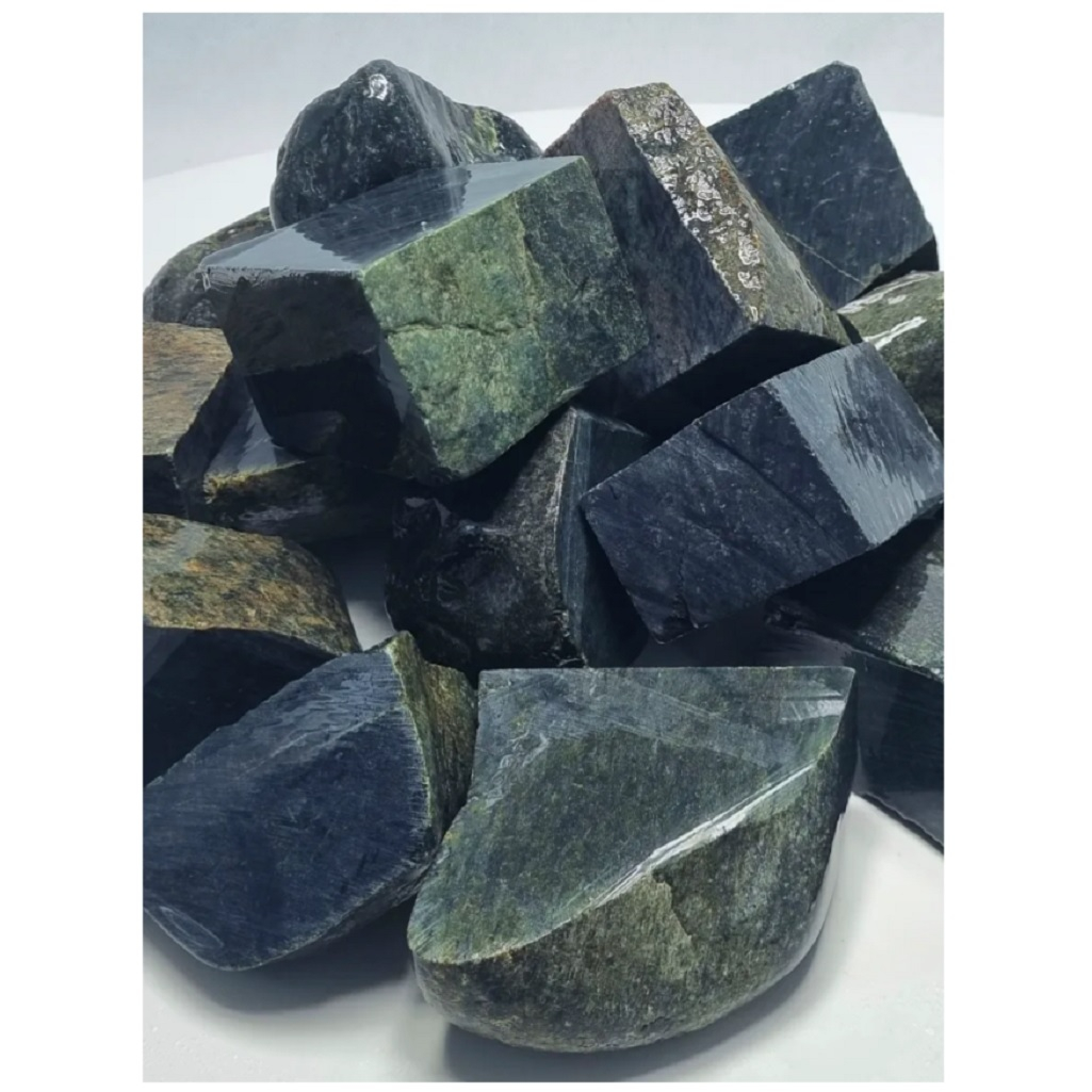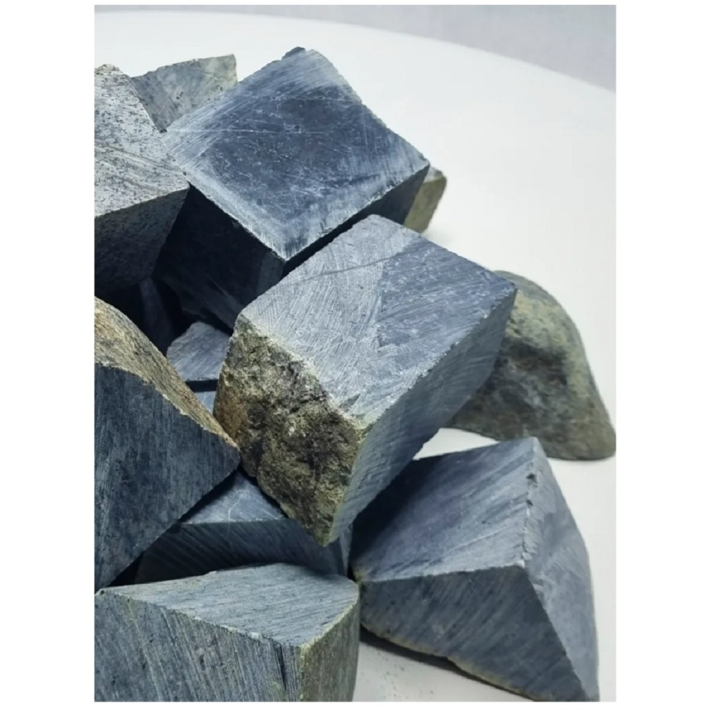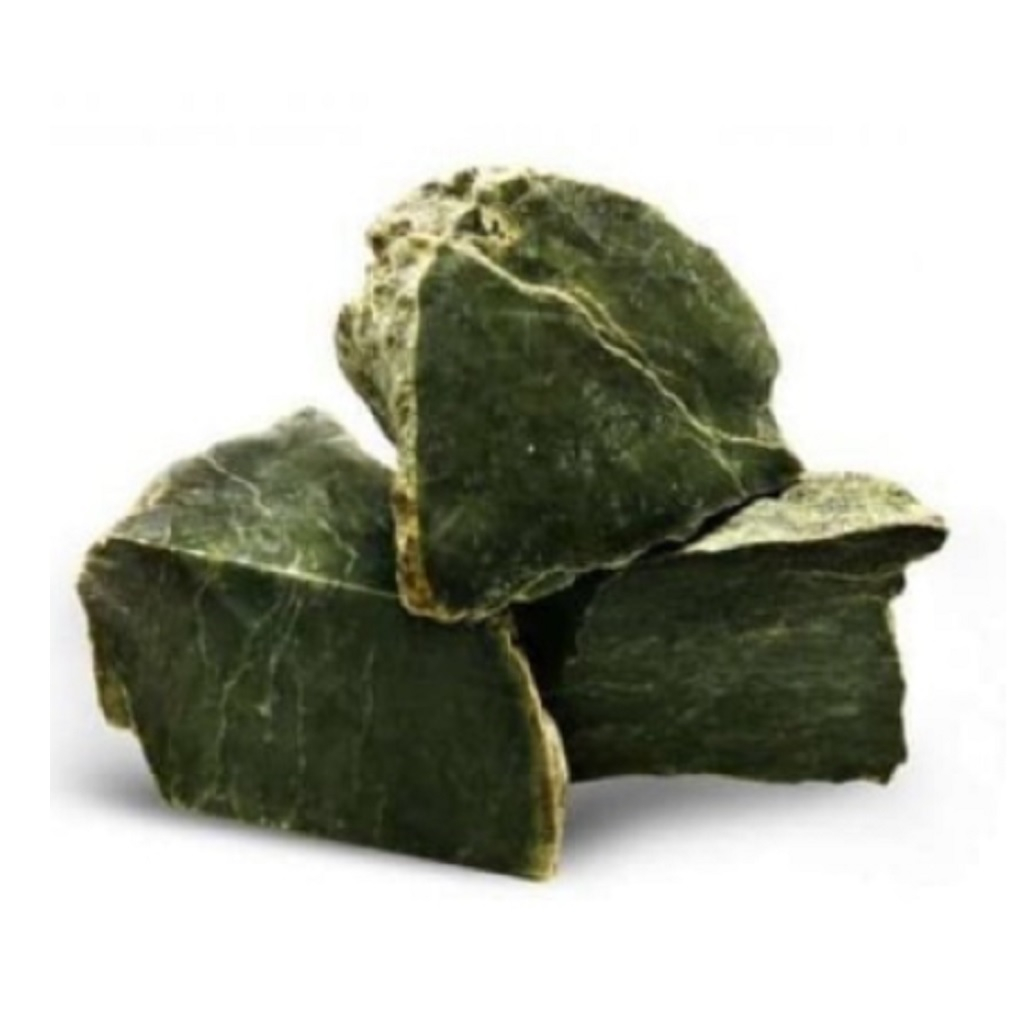 Камень Нефрит пиленый, средний, фракция 60-120 мм, темно-зеленый, 10 кг отлично аккумулирует тепло и медленно его отдает. Идеален для бань и саун: камень выдерживает перепады температур, не выделяет вредных веществ и создает мягкий пар. Благодаря природному зеленому оттенку с уникальными прожилками камень выглядит благородно и органично вписывается в ландшафтный дизайн, интерьеры и рукотворные изделия (например, камины, столешницы, декор).