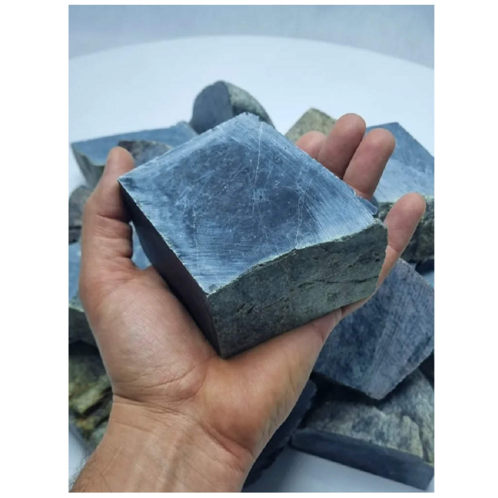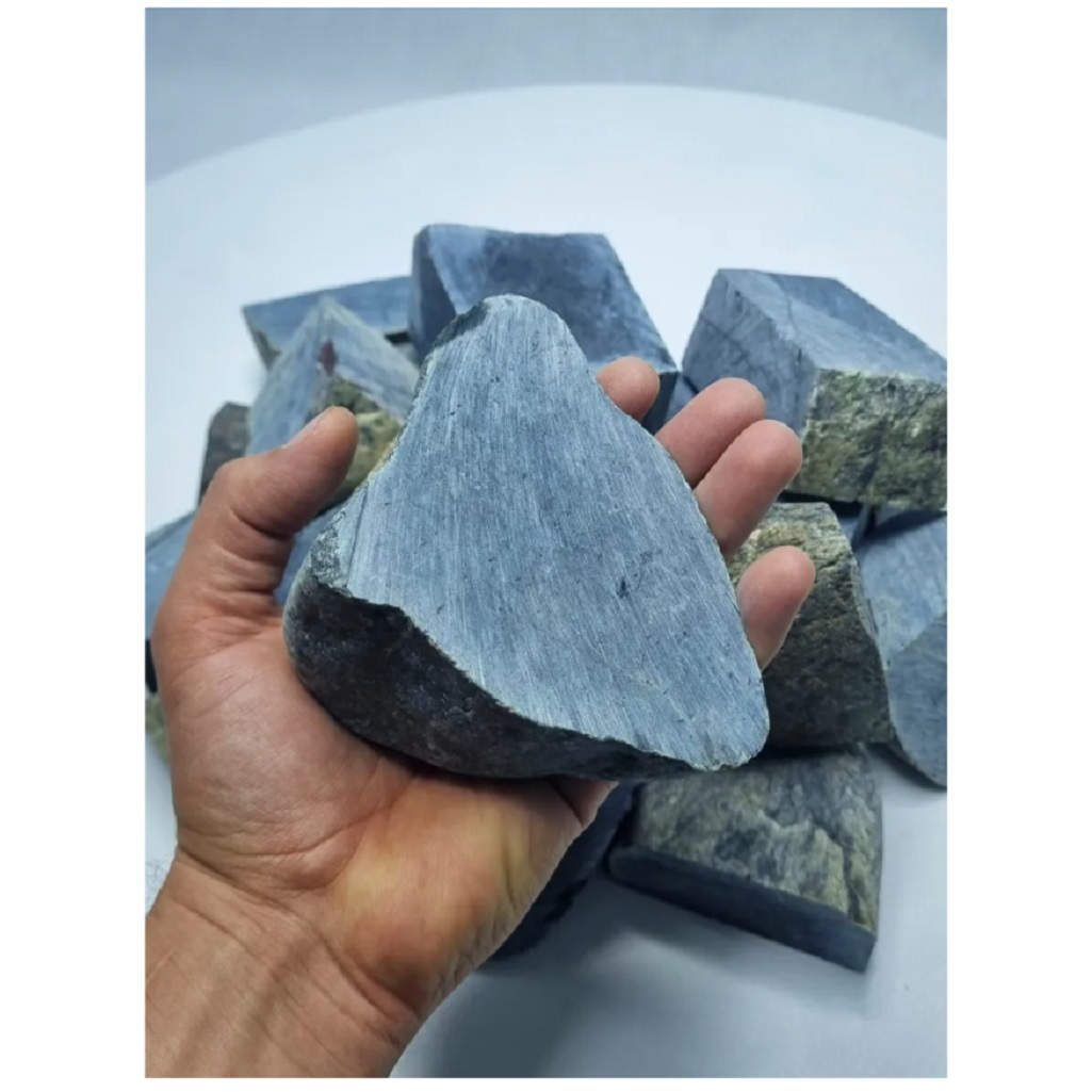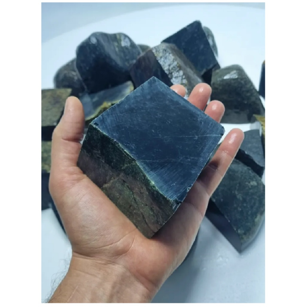Камень Нефрит пиленый, средний, фракция 60-120 мм, темно-зеленый, 10 кг отлично аккумулирует тепло и медленно его отдает. Идеален для бань и саун: камень выдерживает перепады температур, не выделяет вредных веществ и создает мягкий пар. Благодаря природному зеленому оттенку с уникальными прожилками камень выглядит благородно и органично вписывается в ландшафтный дизайн, интерьеры и рукотворные изделия (например, камины, столешницы, декор).