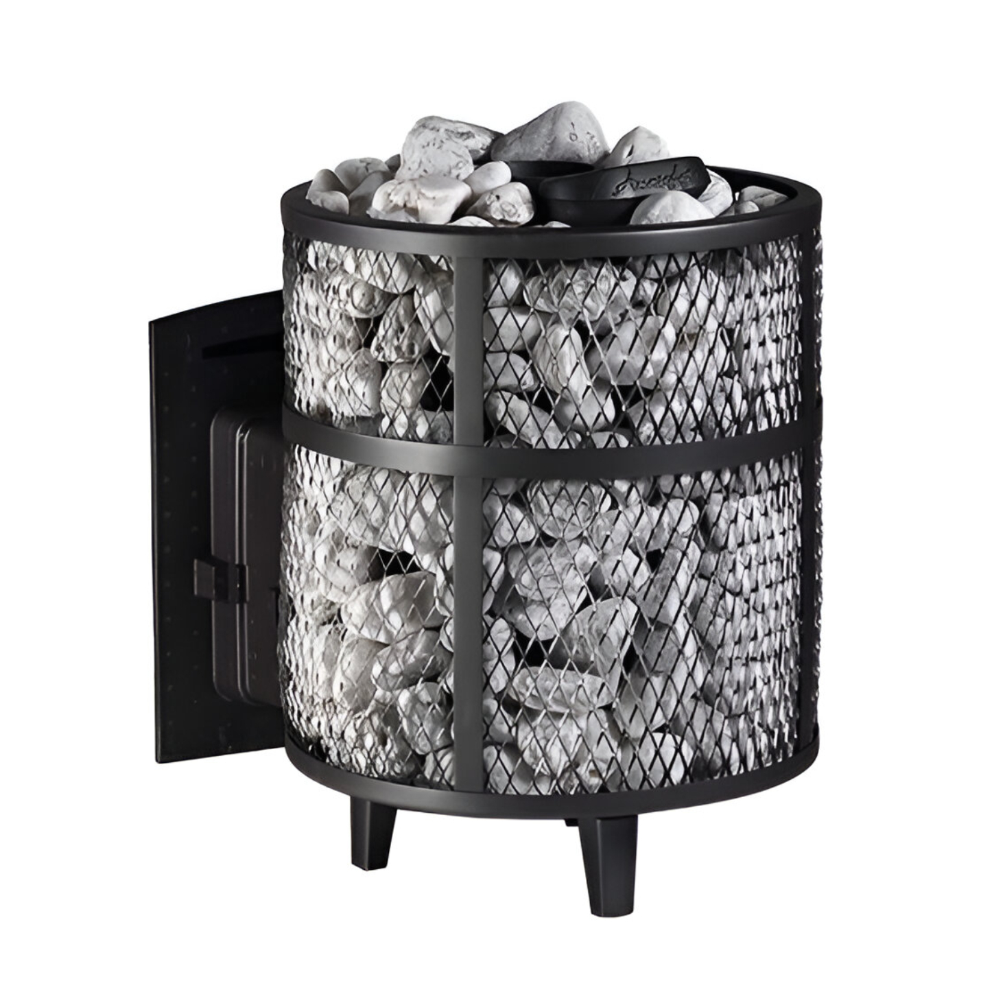 Печь для бани Атмосфера М, чугун, сетка из нержавейки, 14 кВт, d115, до 14 куб.м - это маленькая, но не менее надёжная банная печь для небольших парных помещений, объёмом до 14 куб.м. Печь Атмосфера М отлично подойдёт для небольших частных парных и будет служить долгие годы своему владельцу. Ультра компактная модель банной печи. Кожух печи изготовлен в виде сетки из нержавеющей стали и полностью заполняется природными камнями, обеспечивая высокую динамику нагрева парильного помещения. Максимальный вес камней достигает 110 кг, подключение дымохода производится сверху.