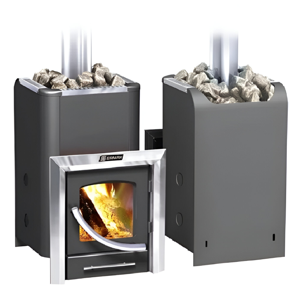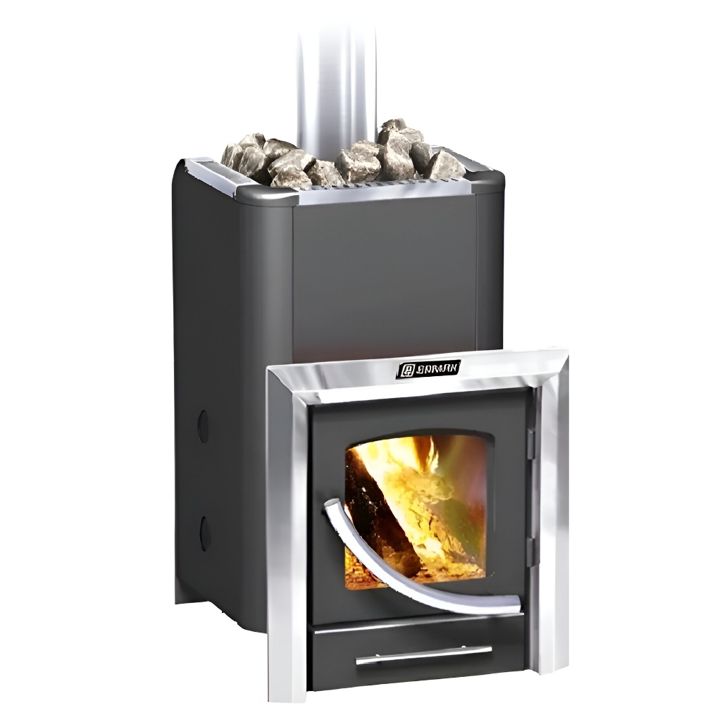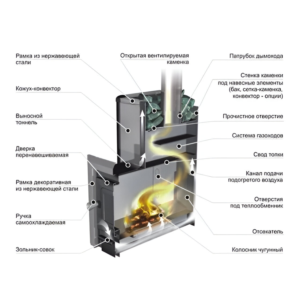 - Каменка открытого типа с большим объемом и площадью теплопередачи