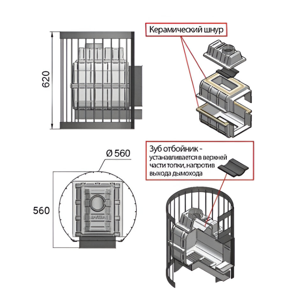 У печи большая масса закладываемых камней, это примерно 120 кг, что гарантирует большое количество качественного пара, быстрый обогрев, длительное остывание печи, а интенсивность горения топлива регулируется выдвижным зольным ящиком.
