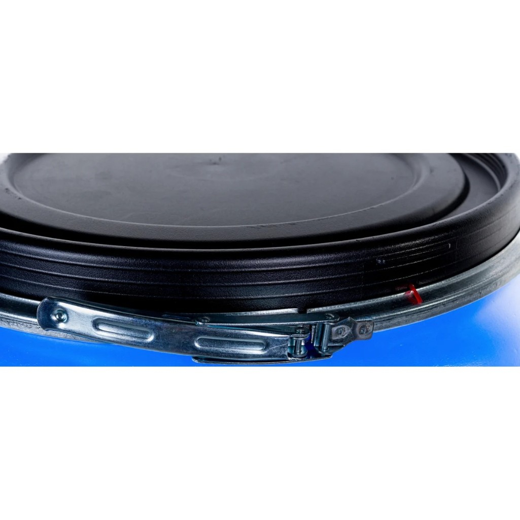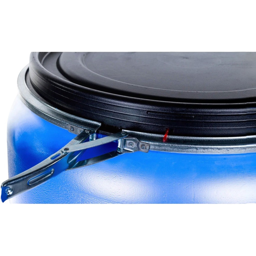 Бочка 220 литров, вымытая, полиэтиленовая, с крышкой на железном обруче, синяя