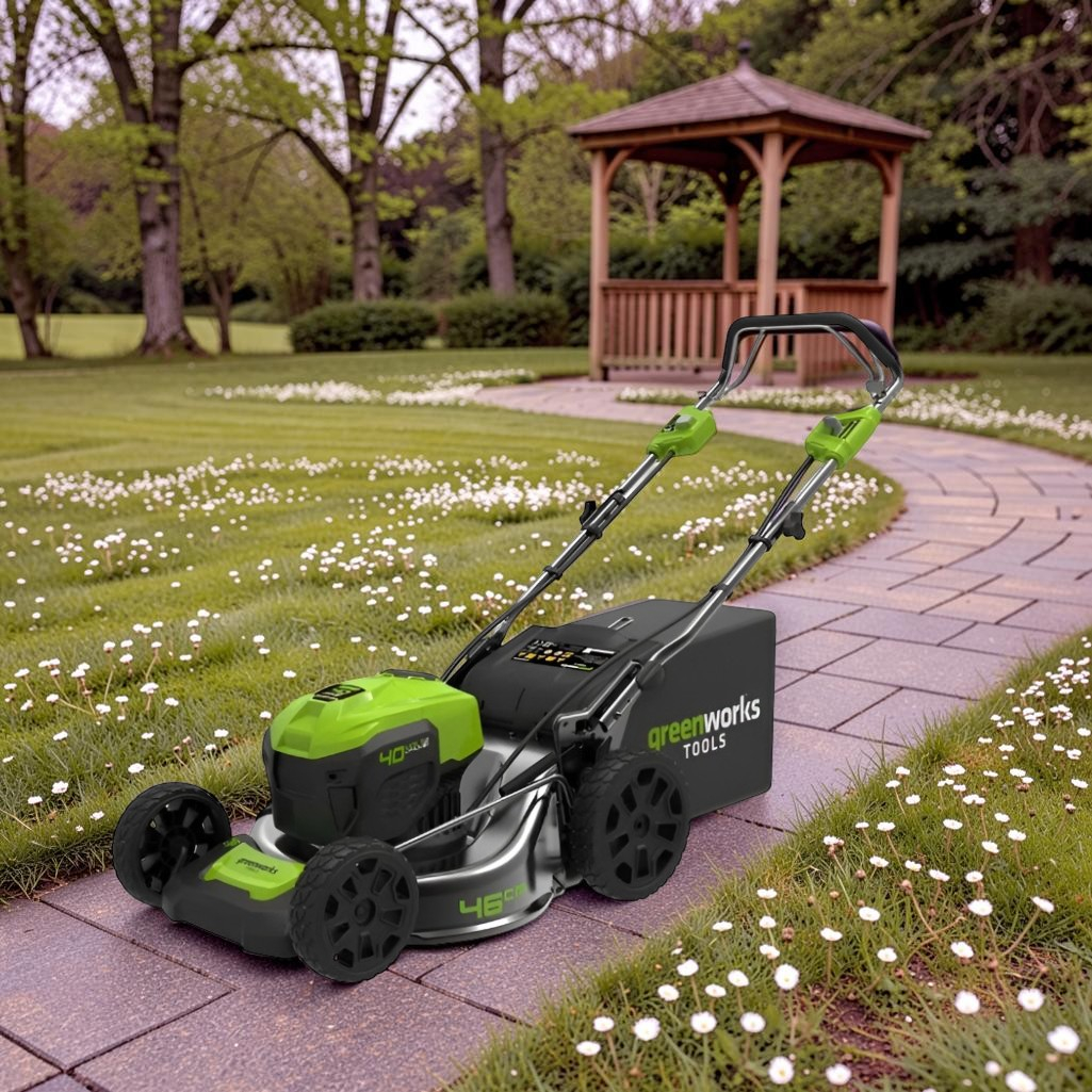 Газонокосилка аккумуляторная Greenworks GD40LM46SP 40В самоходная, травосборник 55 л, АКБ 4 A•ч, зарядное устройство - это модель бесщеточной самоходной аккумуляторной газонокосилки, которая поможет в кошении газонной травы на даче или в загородном доме.
