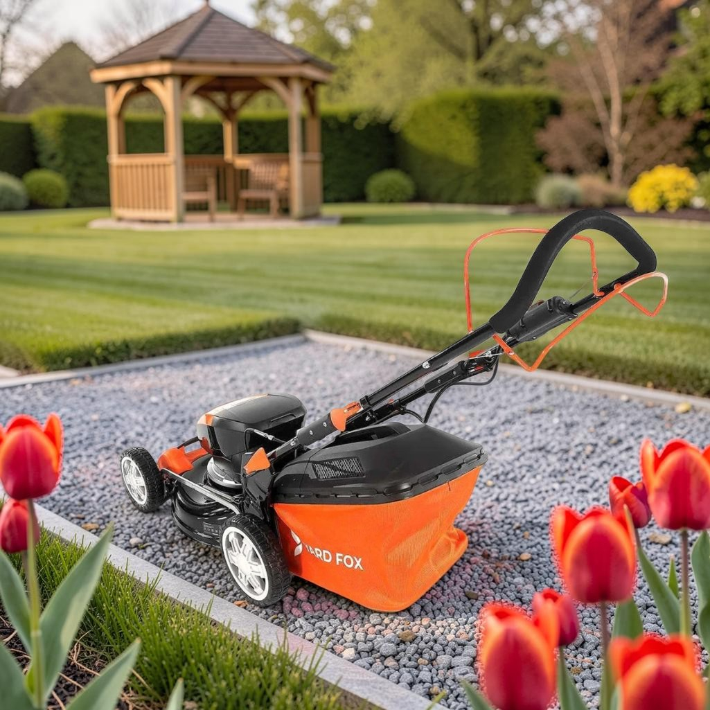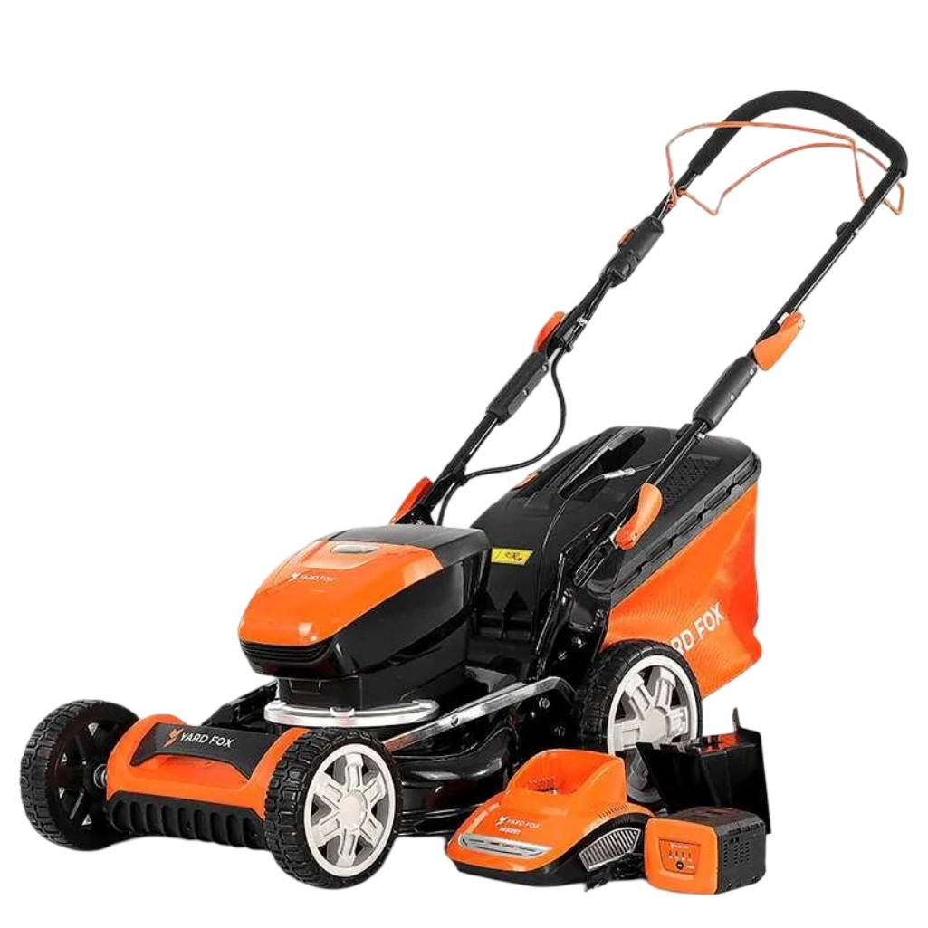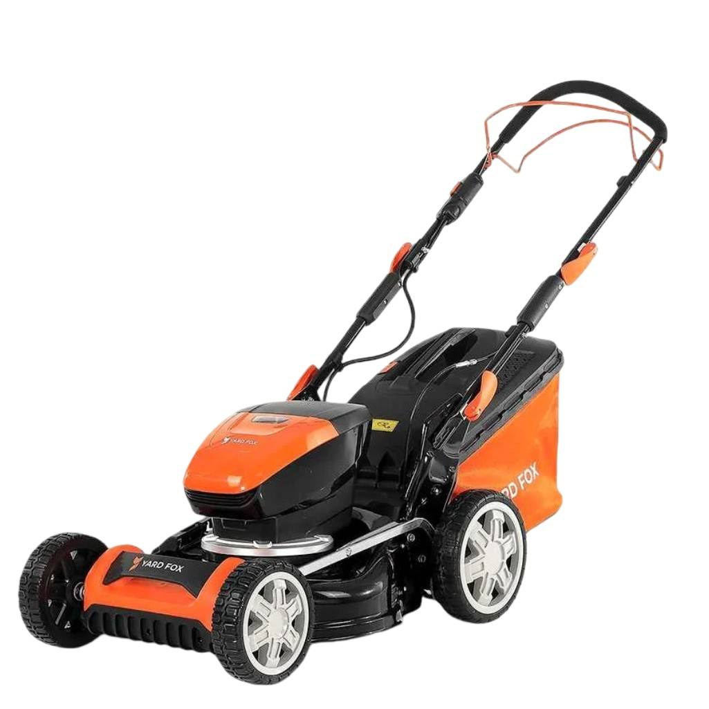 Газонокосилка аккумуляторная YARD FOX EL 4655 B SET, 60В, самоходная, травосборник 55 л, в комплекте АКБ 4 A•ч, зарядное устройство подходит для больших участков. Это самоходная газонокосилка. Бесщеточный двигатель работает тихо, надежно и не требует частого обслуживания. Ширина среза в 46 см позволяет легко объезжать препятствия. 7 уровней высоты кошения от 25 до 75 мм позволяют настроить высоту под любой газон. Компактный травосборник объемом 55 литров сокращает время на уборку, а увеличенные задние колеса диаметром 200 мм спереди, а сзади 250 мм обеспечивают плавное движение и маневренность даже по поверхности с неровностями. В комплекте идет аккумулятор на 60В на 4 А•ч и зарядное устройство, что избавляет от необходимости проводов и топлива. Полная зарядка аккумулятора занимает всего 60 минут. Время работы газонокосилки составляет примерно 35 минут на одном заряде. Этого времени хватит для ухода за небольшим газоном. Для глобальных работы на участках большой площади стоит приобрести дополнительный аккумулятор от YARD FOX.