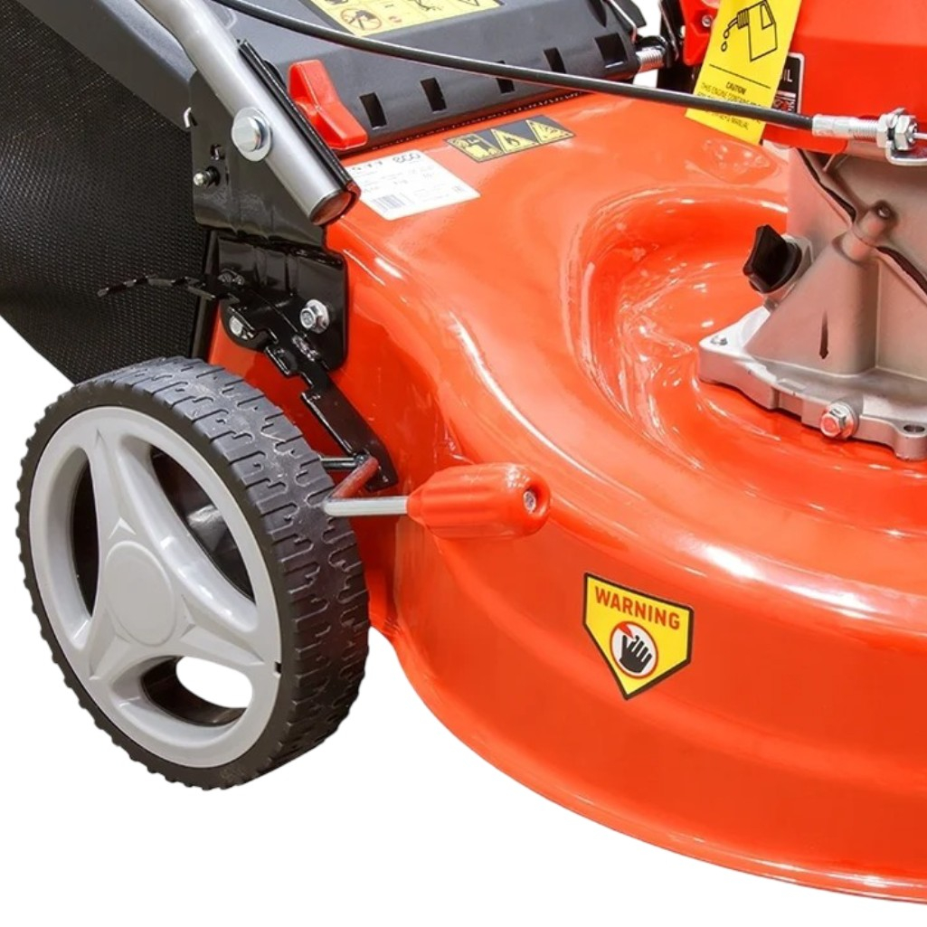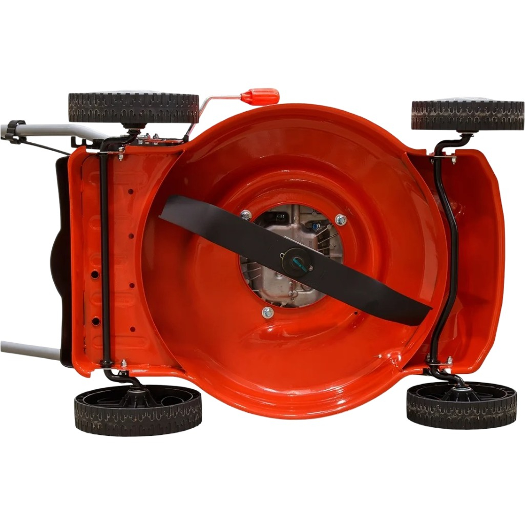 регулировка высоты скашивания, тормоз двигателя, возможность промывки деки, плавная регулировка скорости движения