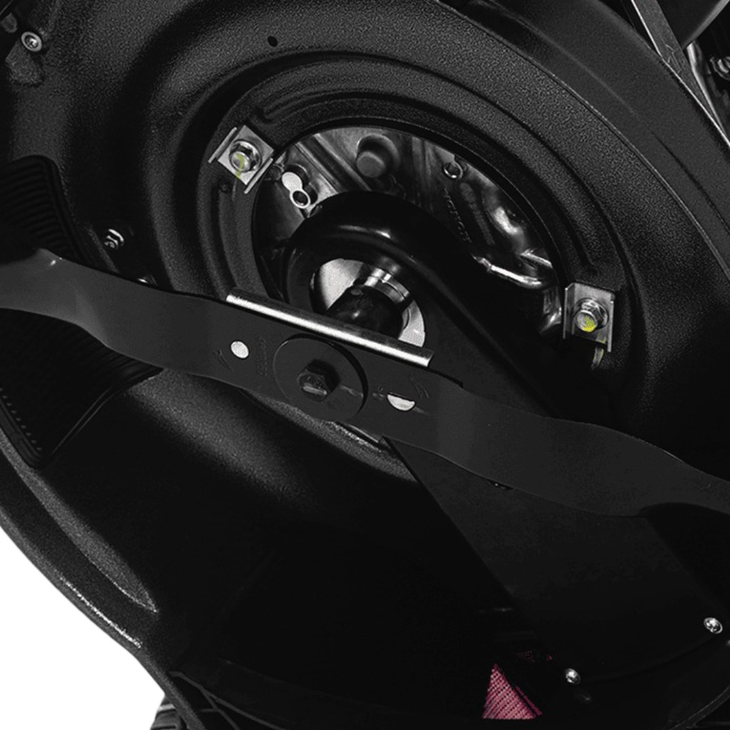 Вес газонокосилки составляет 28 кг, а колеса увеличенного размера делают ее маневренной и простой в управлении и на холмистой местности. Косилка с мягкой ручкой и антивибрационной системой для комфортной работы и складной рукояткой для удобного перемещения и хранения.