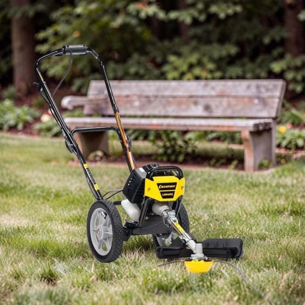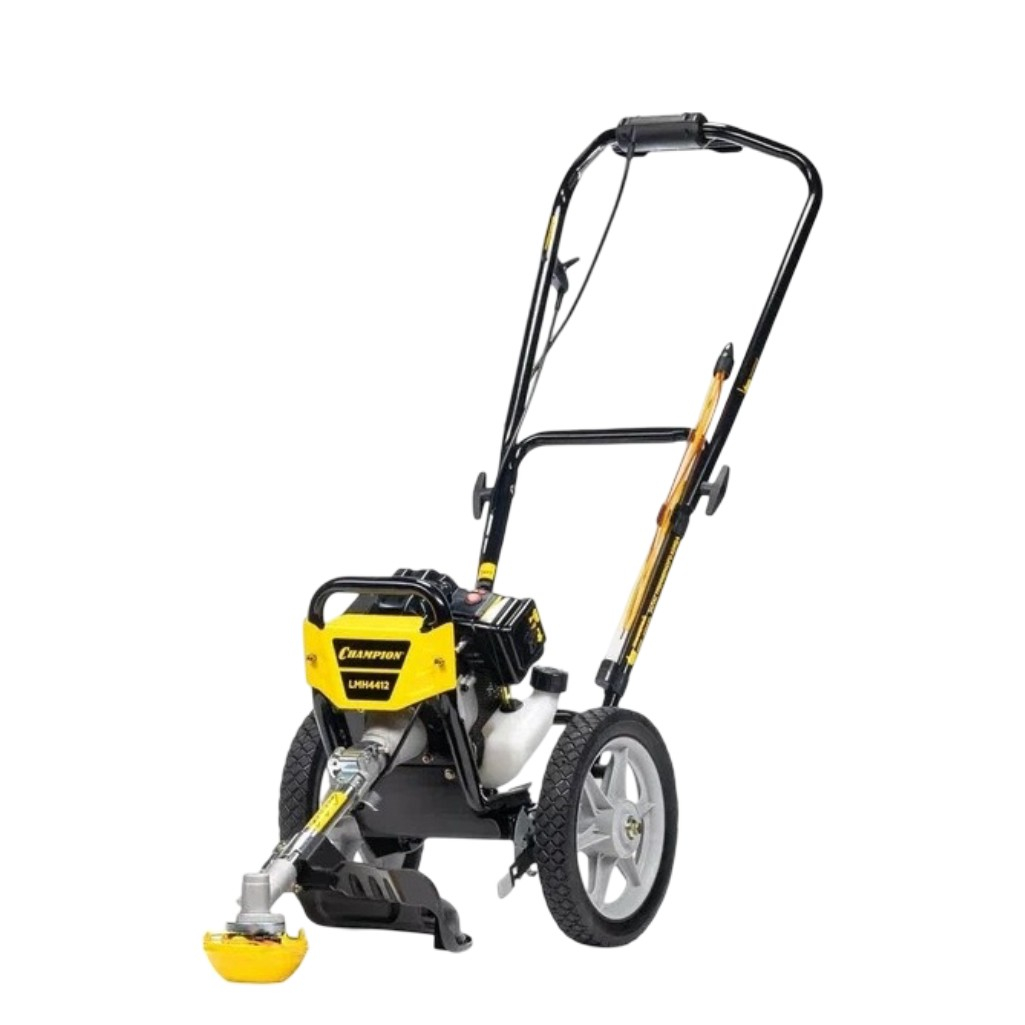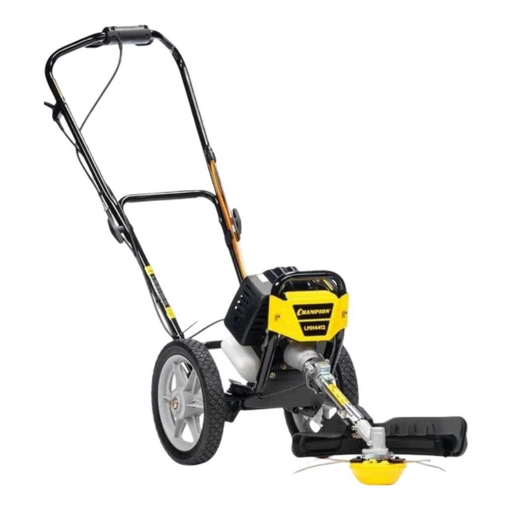 Газонокосилка бензиновая Champion LMH4412, без травосборника, 800 Вт предназначена для непрофессионального использования. Эта модель газонокосилки предназначена для ухода за неровными участками площадью до 20 соток. Она представляет собой тележку на колесах с двухтактным триммером и укороченной штангой, что делает её более легкой и удобной в использовании по сравнению со стандартными колесными триммерами. Конструкция эффективно снижает нагрузку на оператора во время работы. Двухтактный двигатель отличается простотой в обслуживании и относительно низкой стоимостью ремонта, а также высокой скоростью вращения, что обеспечивает хорошую производительность, несмотря на небольшую мощность.