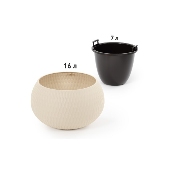 Кашпо Жемчужина бежевый 7 л предназначено для выращивания комнатных и уличных растений. Кашпо состоит из двух частей. Внутренняя вставка имеет отверстия и предотвращает перелив растений и загнивание корней. Внешняя часть защищает кашпо от протекания, а многогранная поверхность придает визуальную легкость и особенную эстетику изделию. Благодаря необычной сферической форме оно станет украшением любого интерьера.