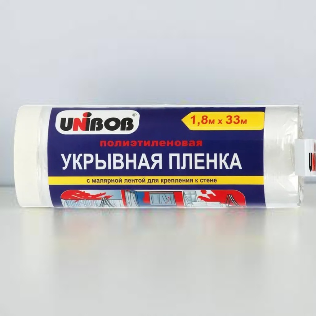 Описание пленки Unibob 211784 с малярной лентой, полиэтилен, рулон 1.8х33 м