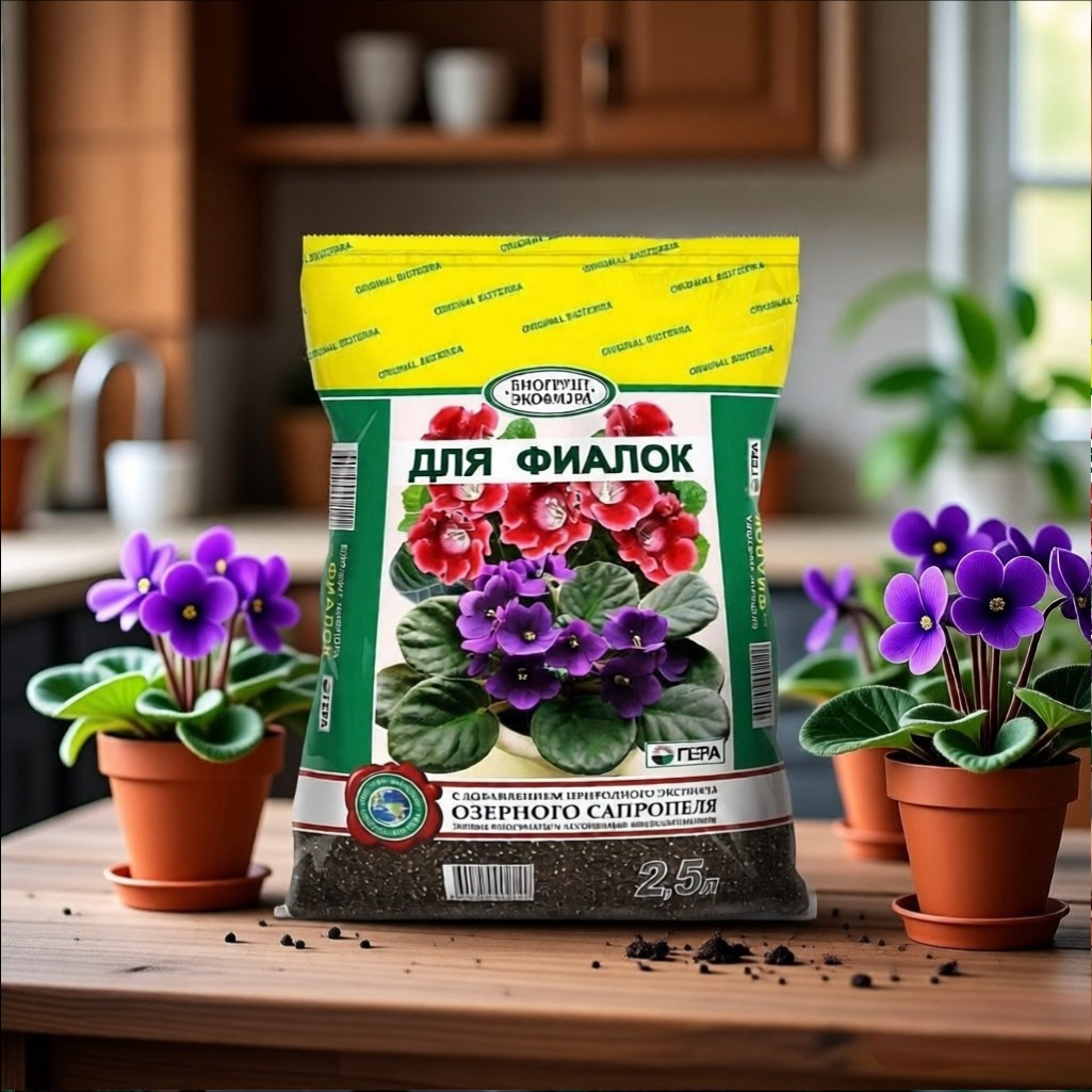 Грунт для фиалок Гера Биогрунт Экофлора с добавлением экстракта озерного сапропеля, 2.5 л