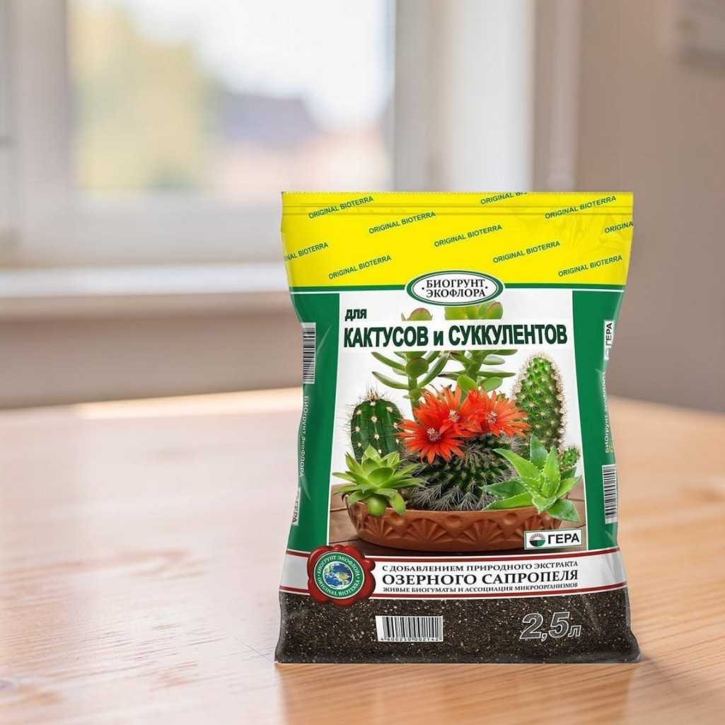 Грунт Гера Биогрунт Экофлора Для кактусов и суккулентов с экстрактом озерного сапропеля, 2.5 л в Москве
