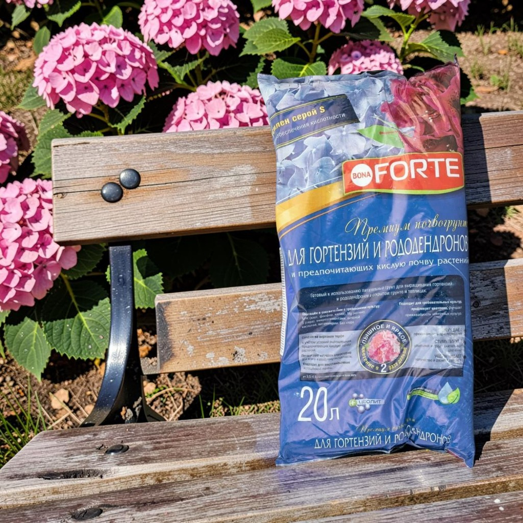 - Грунт BONA FORTE для гортензий, рододендронов и предпочитающих кислую почву растений 20л