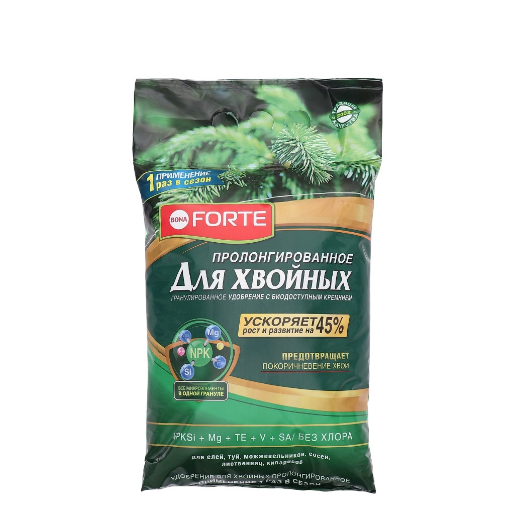 - Удобрение BONA FORTE Хвойное с биодоступным кремнием пролонгированное 2,5кг
