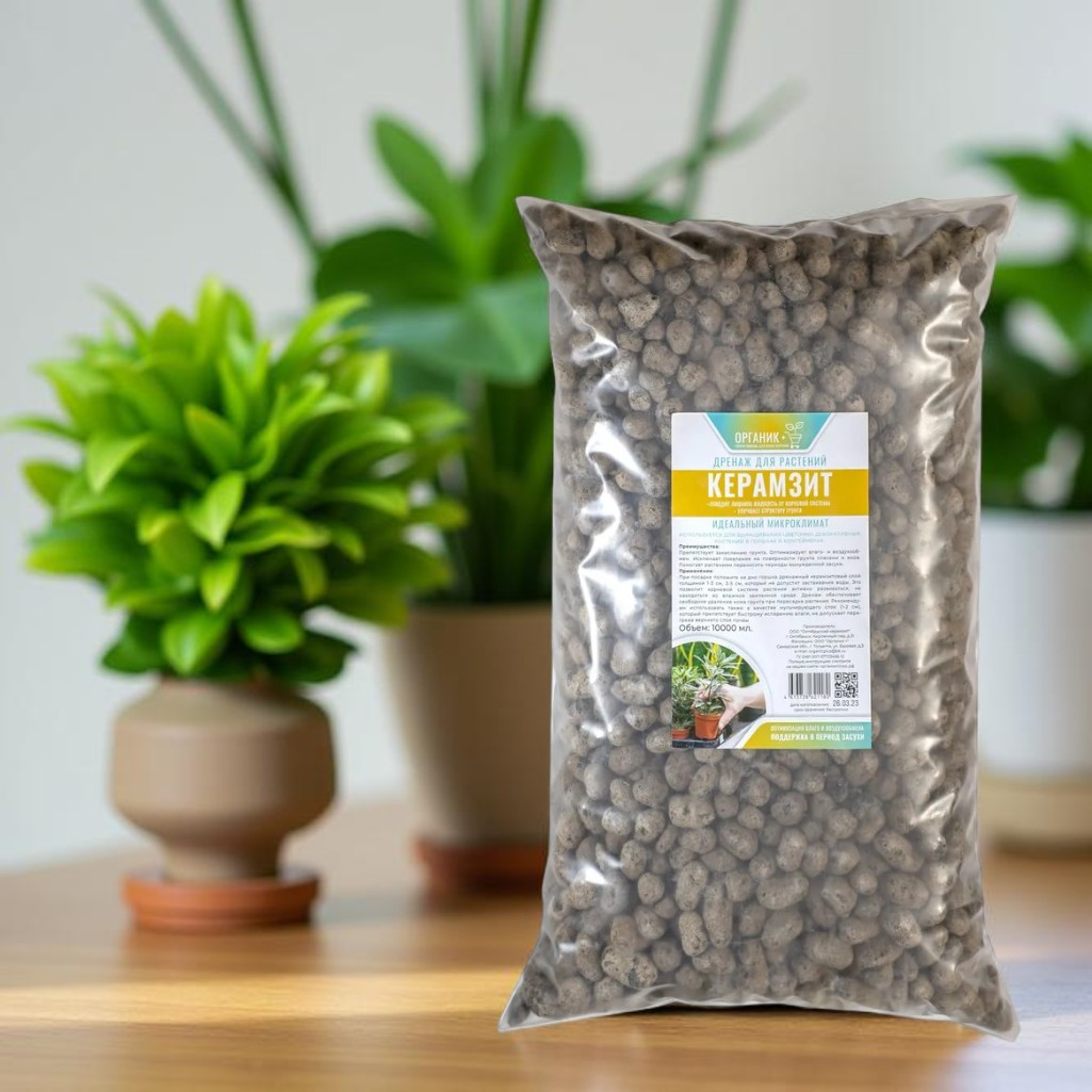 Дренаж цветочный Органик+ для растений, керамзит, идеальный микроклимат, 10 л