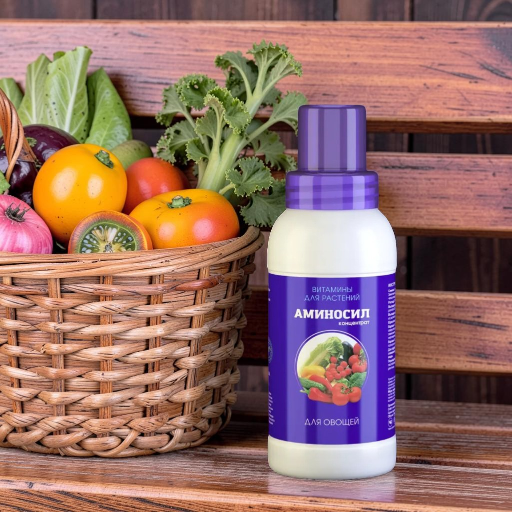 Регулярное использование Удобрение Аминосил концентрат для овощей, витамины для растений, 250 мл на всех этапах жизни растений обеспечит максимальную урожайность, а также усилит полезные свойства и качества Ваших овощей.