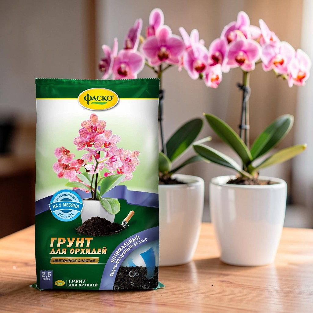 Грунт для орхидей Фаско Цветочное счастье, специализированный, 2.5 л - полностью готовый к применению питательный грунт для выращивания всех видов орхидей (Фаленопсиса, Каттлеи, Цимбидиума, Мильтониопсиса, Дендробилума, Пафиопедилума) и других эпифитов. Особый состав обеспечивает здоровый рост растений и поддержание высокой декоративности. Обладает оптимальной структурой для доступа воздуха к корням. Объем 2.5 л.