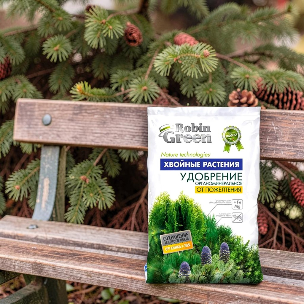 Описание удобрения Robin Green Хвойные растения, от пожелтения, органоминеральное, 2.5 кг