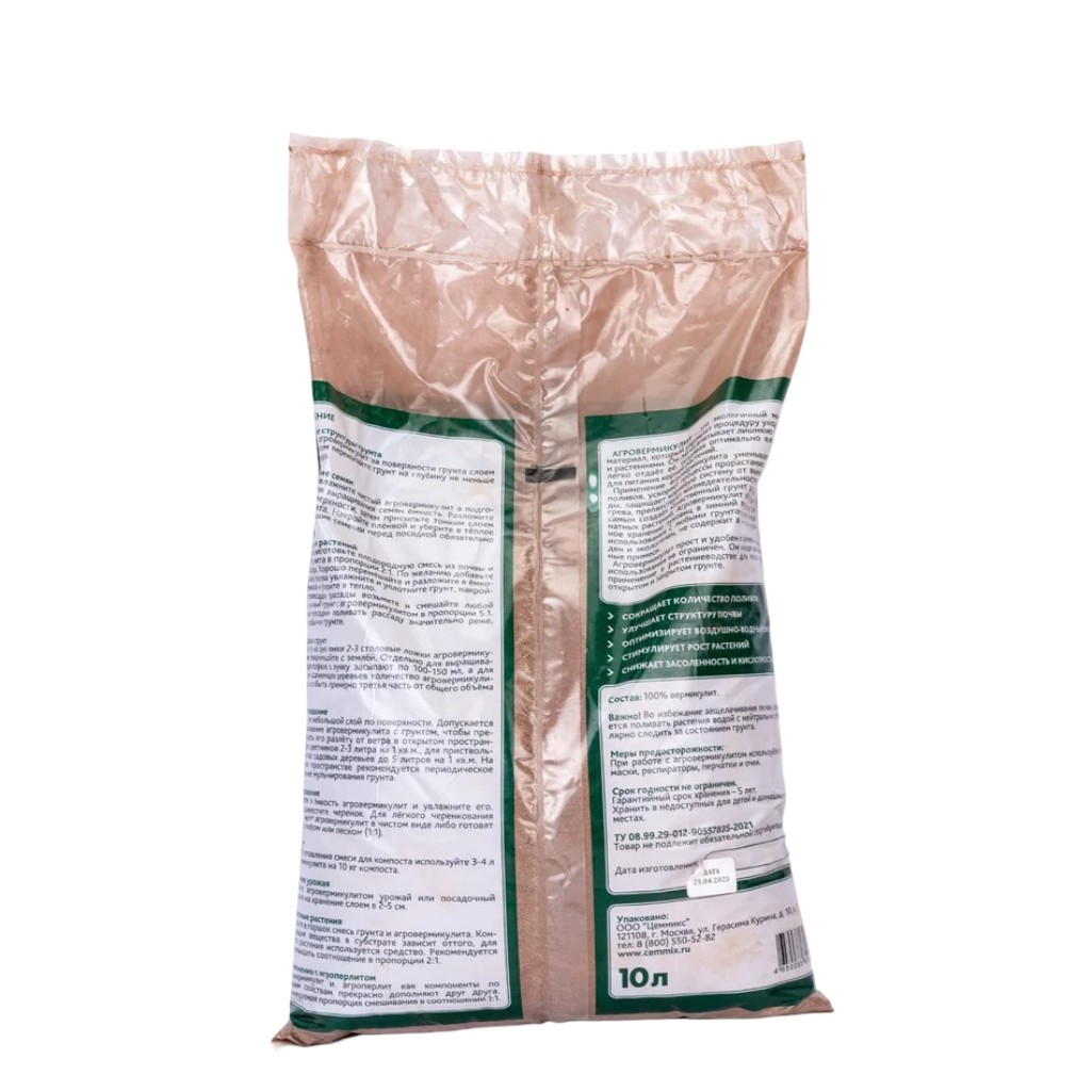 Технические характеристики удобрения CEMMIX Вермикулит абсорбент, минеральная добавка для почвы, 10 л