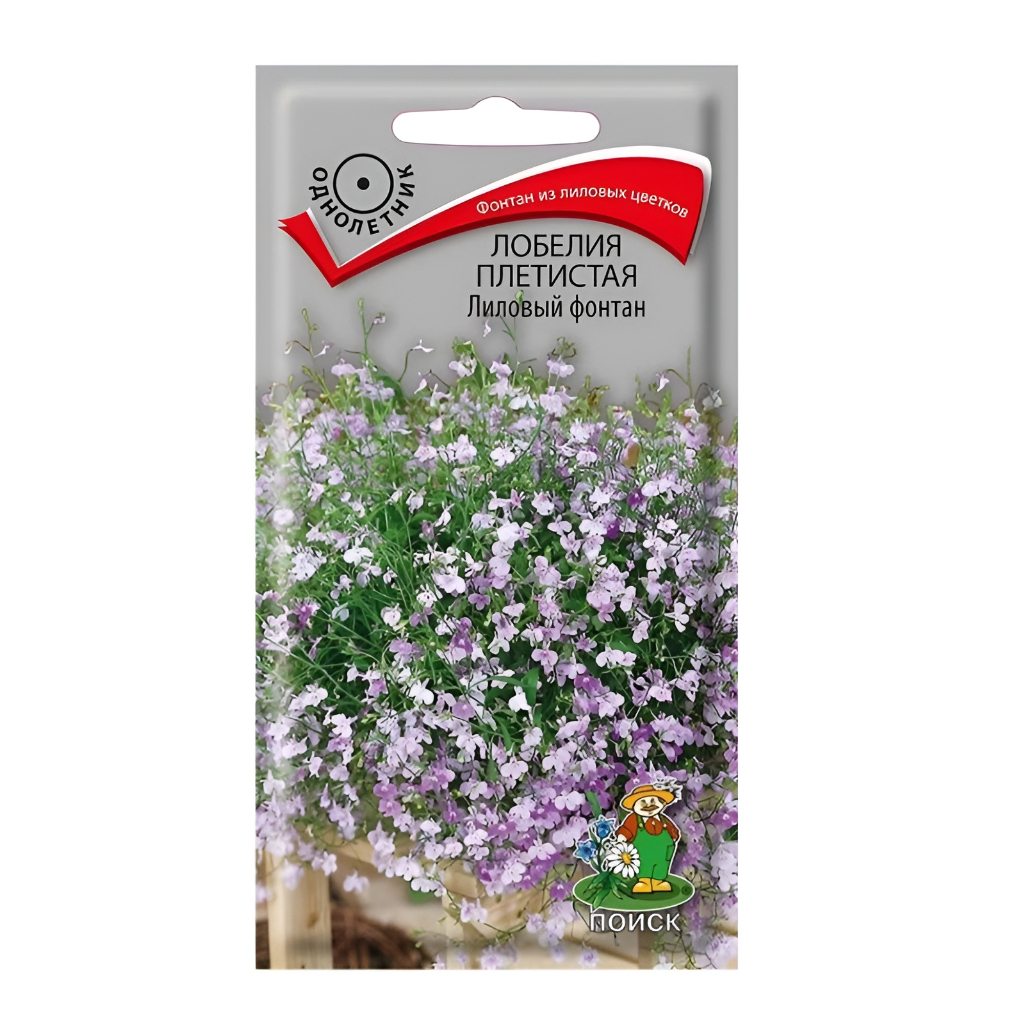 Семена Лобелия плетистая Лиловый фонтан Поиск, 0.1 г — красивое травянистое растение со свисающими побегами длиной до 30 см, густо усыпанными нежными лиловыми цветками. Цветение начинается в июне и продолжается в течение всего лета. При августовской обрезке наступает вторая волна цветения, которая длится до заморозков. Идеально подходит для подвесных кашпо, балконных ящиков и контейнеров.