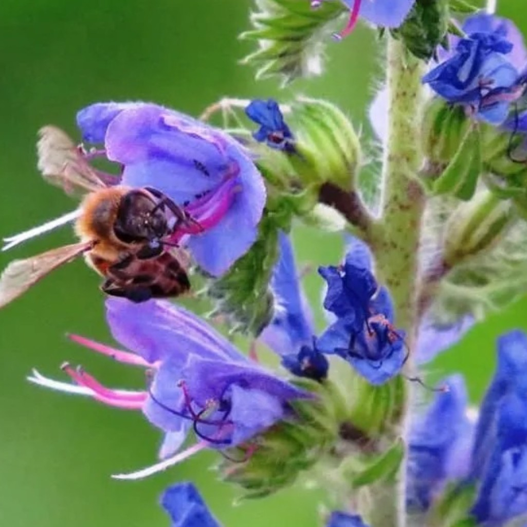 Синяк обыкновенный, семена Агро Исеть сидерат, медонос, фитосанитар 0.5 кг имеет крупные цветки, собранные в завитки на вытянутых цветоносах, в начале цветения розовые, а затем с синим венчиком. Многочисленные завитки формируют в верхней половине стебля вытянутое пиромидальное колосовидное соцветие. Корень стержневой системы, глубоко проникает в почву. Плод сухой, распадается на 4 трехгранных бугорчатых орешка, на верхушке заостренных. Медонос. Пчелы собирают не только нектар, но и пыльцу синяка.
