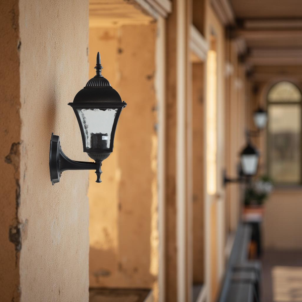 Фонарь уличный Reluce 08243-0.2-001W BK настенный, 40 Вт, Е27, IP44, металл, черный