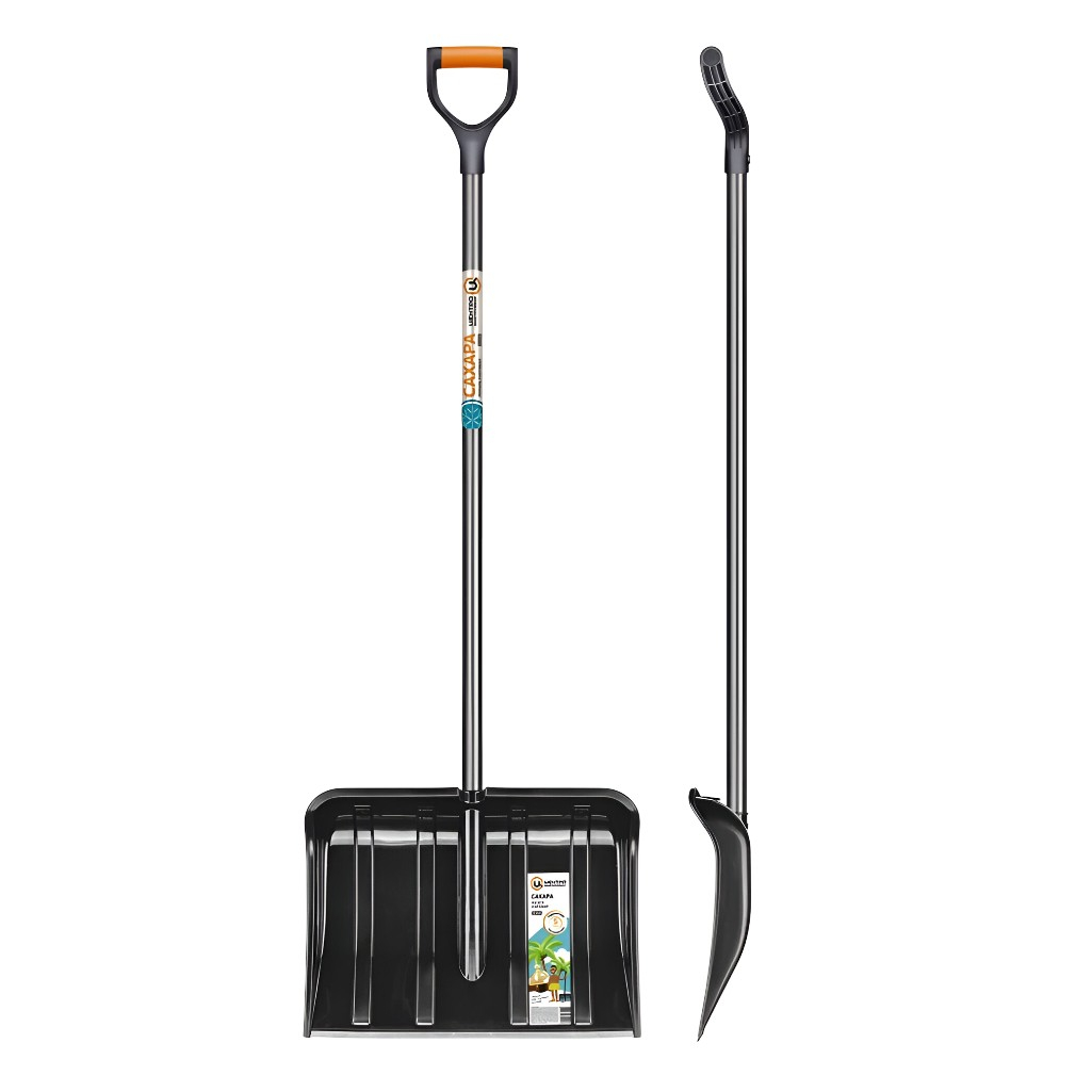 Лопата для снега ЦентроИнструмент Сахара 0364-Ч, деревянный черенок, металлическая пластина, пластик