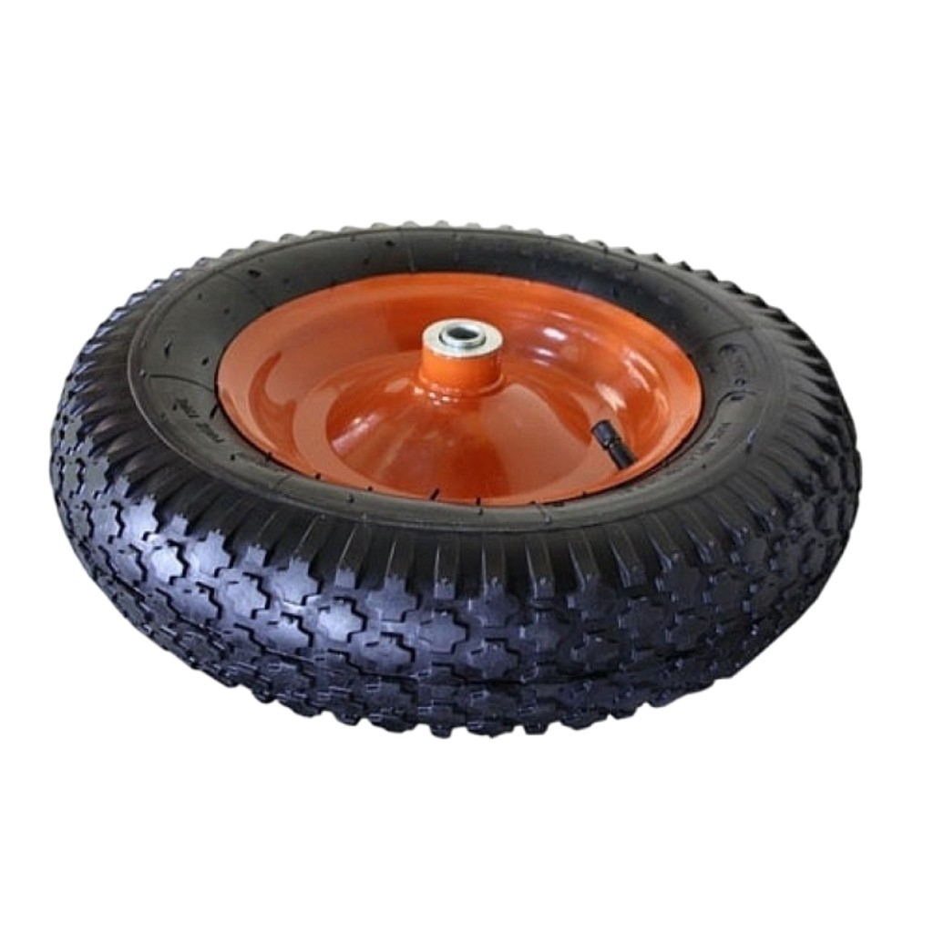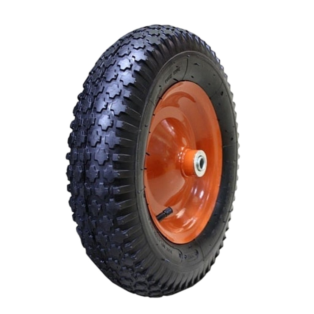 Колесо для тачки, с подшипником, диаметр 380 мм, полиуретан, оранжевое - это запасное полиуретановое колесо для садовой или строительной тачки Колесо отличается плавным ходом и качественным изготовлением. Полиуретановые шины устойчивы к проколам и механическим повреждениям, выдерживают давление от полной загрузки кузова тачки тяжелым грузом. От коррозии обод колеса защищен качественным порошковым окрашиванием. При соблюдении весовой нагрузки колеса прослужат долгий срок, они устойчивы к износу и практически не требуют ухода в процессе эксплуатации. Эти колеса не нуждаются в периодической проверке давления и подкачке. Все обслуживание сводится к обслуживанию втулки и очистке от загрязнений. Подшипник 4.8х8.