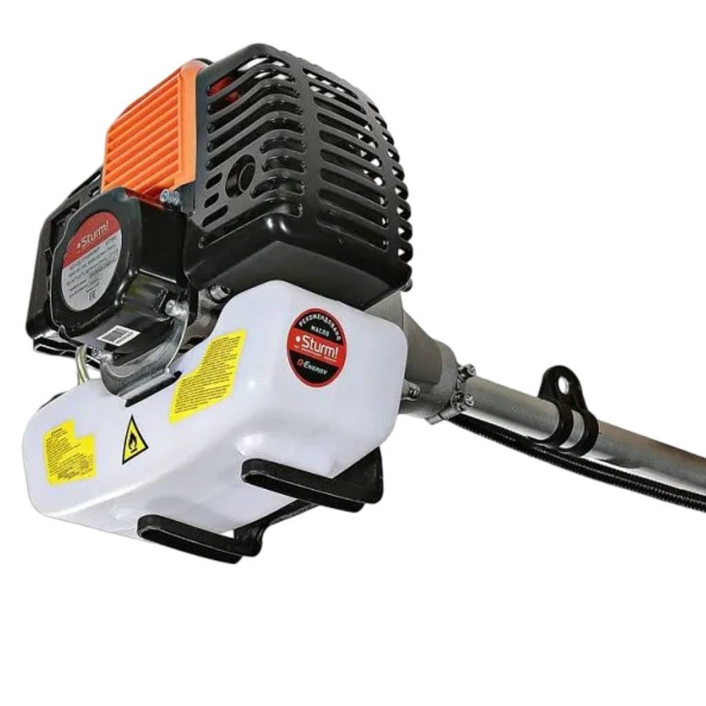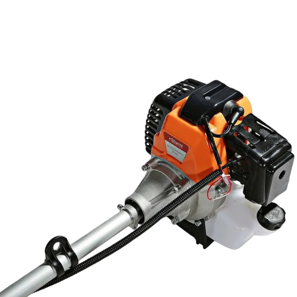 Триммер бензиновый Sturm BT156 для травы и кустарника, 4000 Вт предназначен для ухода за садовым участком. Выключатель триммера расположен на ручке, что обеспечивает удобство управления бензотриммером. Безопасность оператора во время работы с триммером гарантируется защитным кожухом, который предохраняет от попадания мелких камней и мусора. Благодаря возможности использования как триммерной головки с леской, так и ножа, данная модель триммера способна выполнять широкий спектр задач. Работа с различными типами оснастки, включая металлические ножи, становится возможной благодаря валу повышенной прочности, передающему крутящий момент от двигателя к режущим элементам. Топливный бак объемом 1.2 литра обеспечивает длительную работу без необходимости частой дозаправки. Рукоятки бензокосы оснащены антивибрационным покрытием, снижающим нагрузку на кисти рук оператора. Для облегчения запуска используется ручной стартер с дополнительной пружиной. Праймер (насос предварительной подкачки топлива) позволяет завести двигатель даже при низких температурах или после длительного простоя. Металлическая защита пластмассового бензобака увеличивает срок службы и безопасность использования триммера. Комфорт при работе обеспечивает плечевой ремень, позволяющий настроить положение триммера в зависимости от физических параметров оператора.