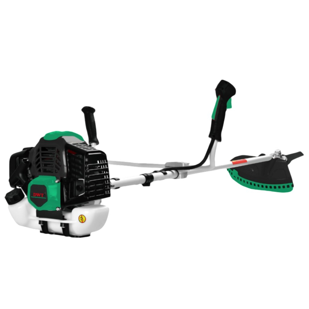 Триммер бензиновый DWT BFSP2101 для травы и кустарников, 2.1 л.с., 1600 Вт предназначен для стрижки травы и другой мягкой растительности с использованием катушки с леской. При замене катушки на косильный нож с четырьмя десятками зубьев (40Т), оснащенных твердосплавными вставками, оно эффективно справляется с молодыми побегами кустарников и деревьев. Этот инструмент позволяет привести в порядок сильно заросшие участки, неровные поверхности и узкие пространства, такие как зоны между садовыми постройками и клумбами. Двухтактный бензиновый двигатель работает на топливной смеси из бензина и специального масла для двухтактных двигателей (2Т) в пропорции 40:1. Простое и интуитивно понятное управление расположено на эргономичной рукоятке велосипедного типа для удобства пользователя. Ранцевый подвес равномерно распределяет нагрузку на руки и спину, предотвращая усталость и дискомфорт. Также предусмотрены легкий запуск и праймер для подкачки топлива в карбюратор. Модель отличается экономичностью и низким уровнем шума. Прочная неразборная штанга диаметром 28 мм обеспечивает надежность и долговечность конструкции. Штанга не разбирается.